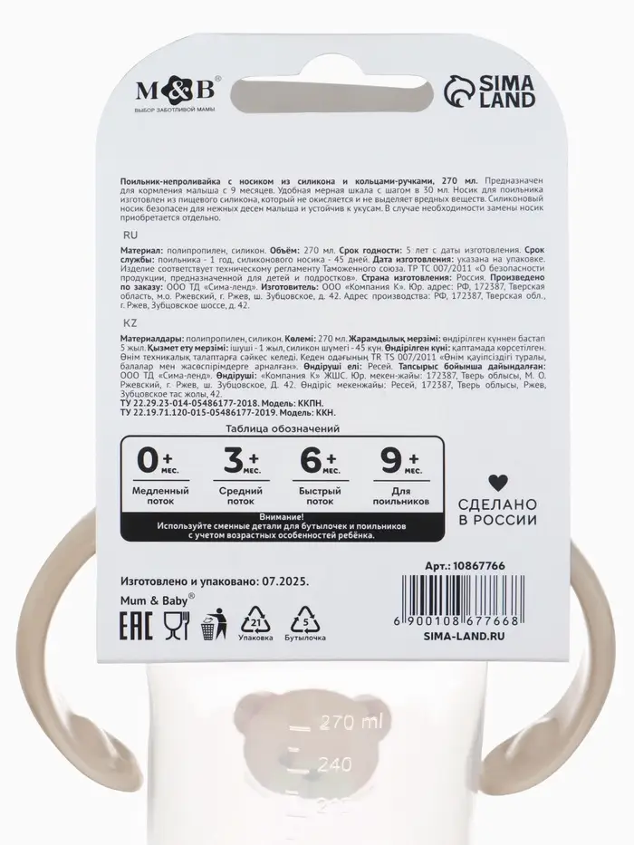 Поильник - непроливайка Baby Bear с силиконовым носиком, 270 мл., бежевый Mum&Baby
