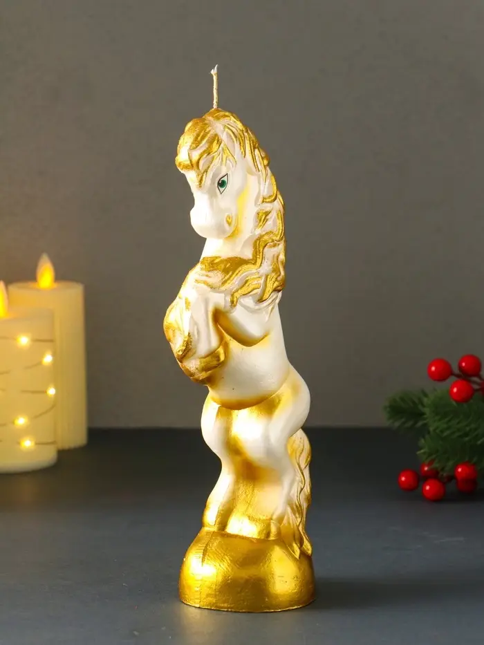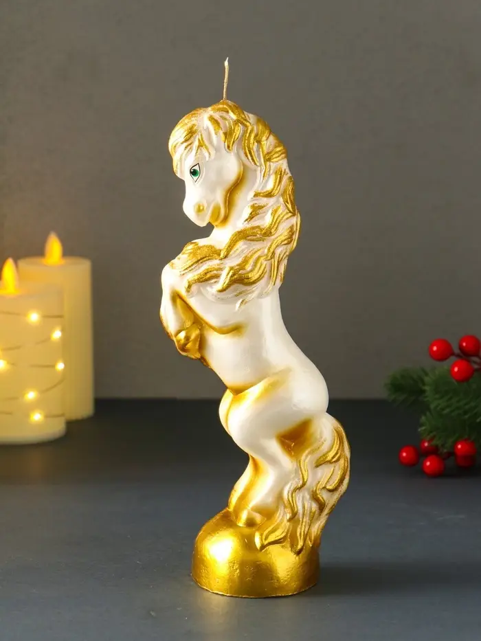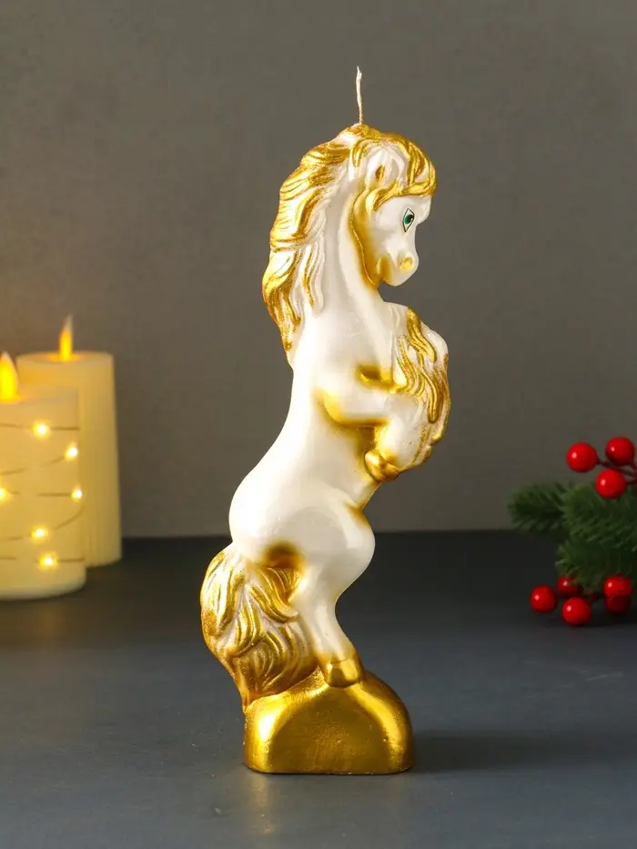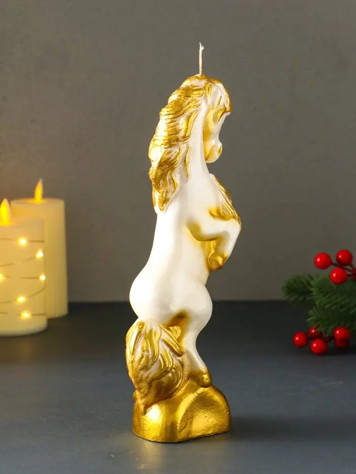 Свеча новогодняя "Конь на дыбах" белый 9х6,2х25,5 см