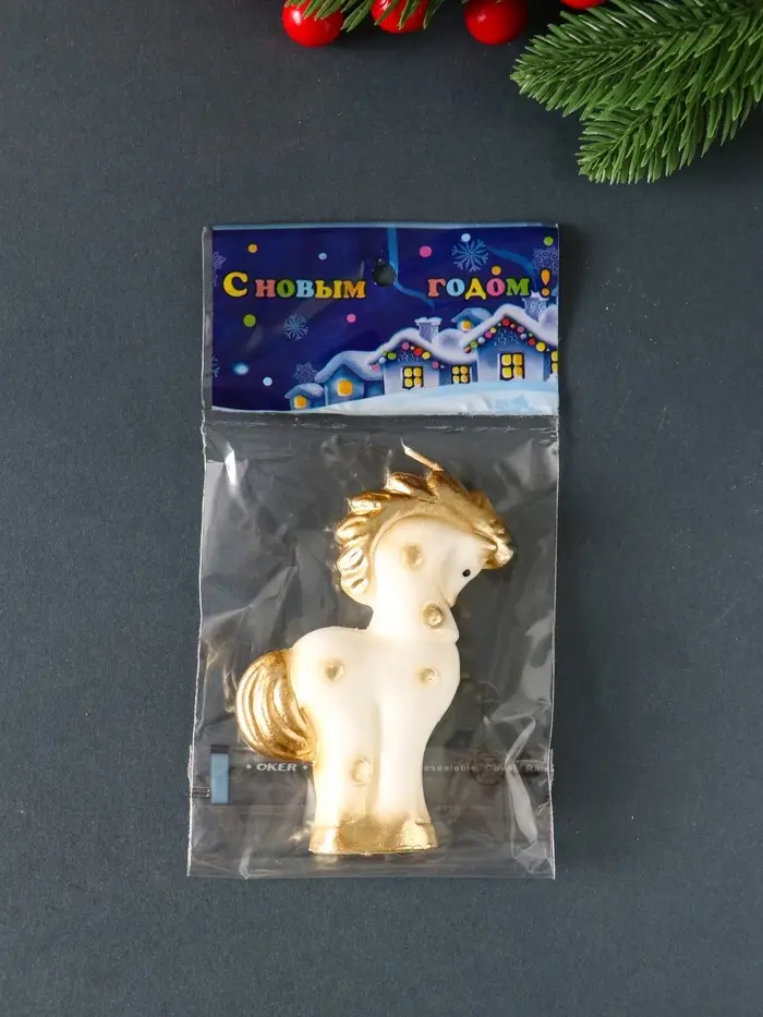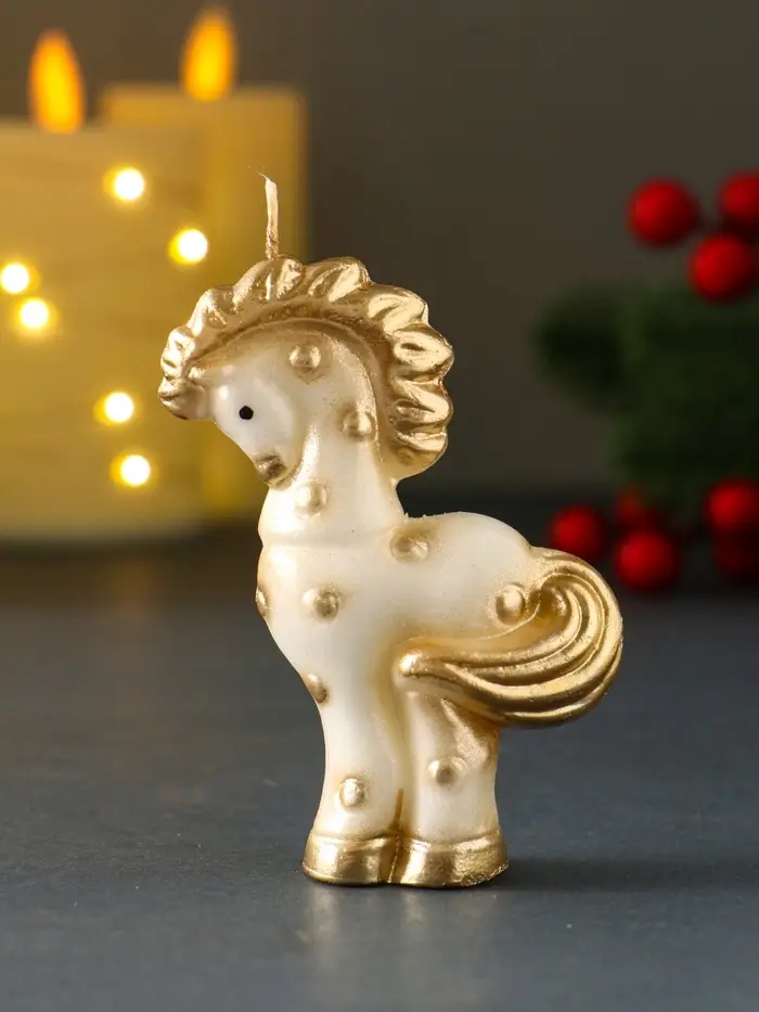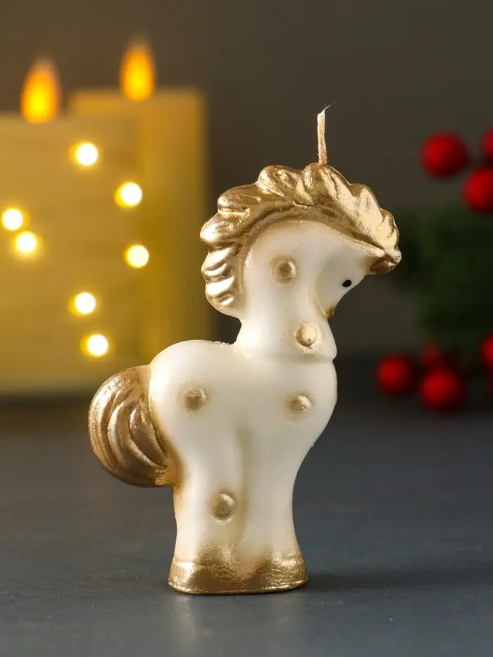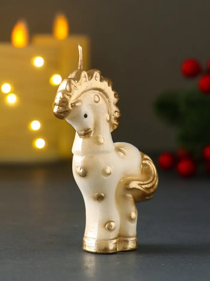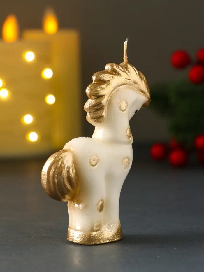 Свеча новогодняя "Лошадка" золотой 6х2,5х8,2 см
