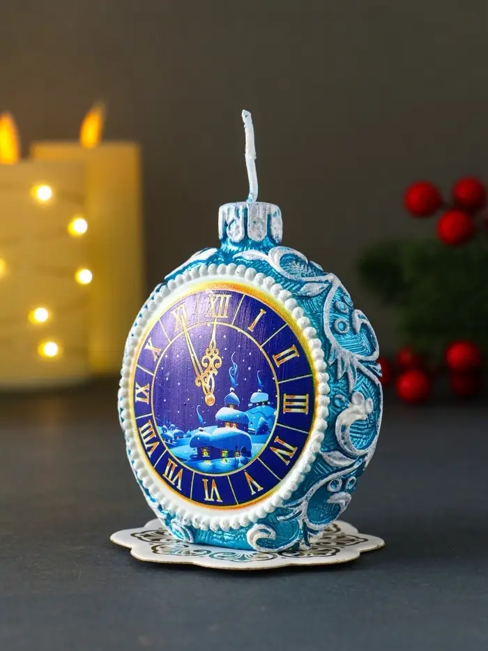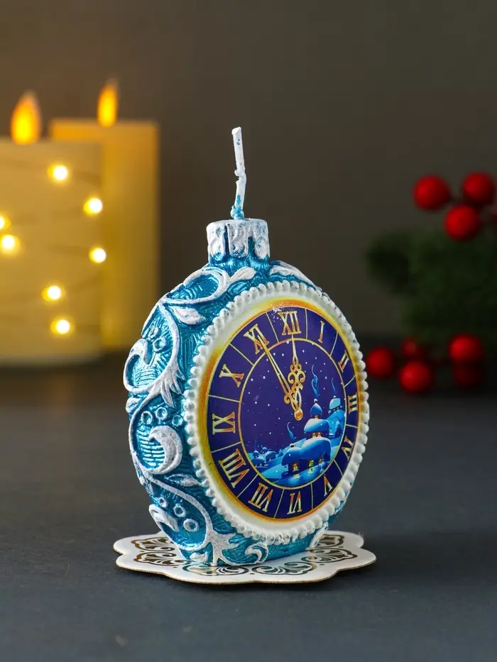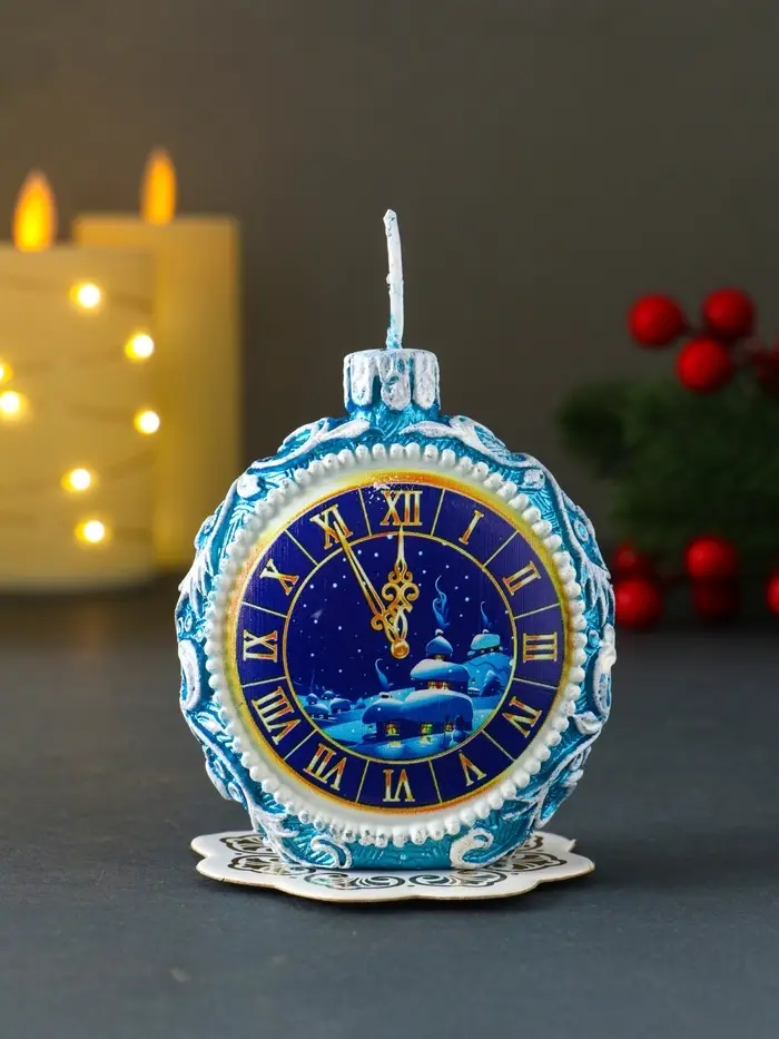 Свеча новогодняя круглая "Куранты" 7,2х5х8,5 см