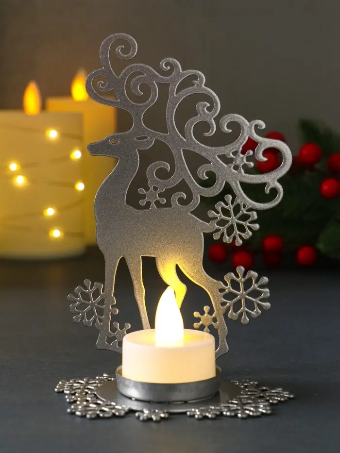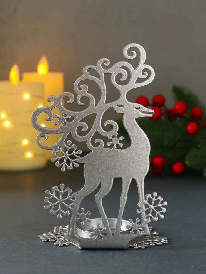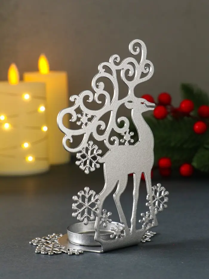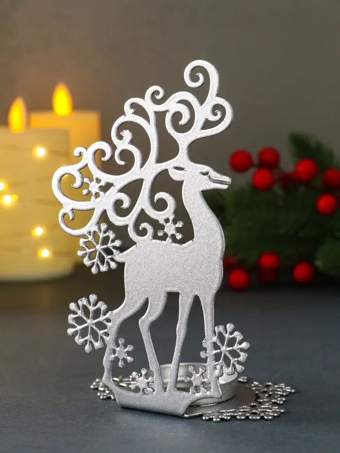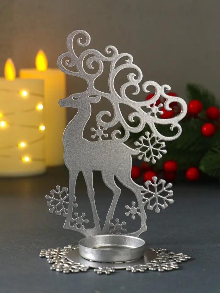 Подсвечник новогодний "Олень" серебряный 6,5х9,6х14,5 см