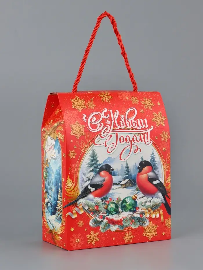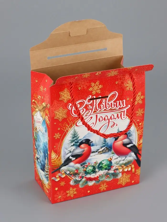 Коробка подарочная складная "Снегири" 16 х 8 х 20 см