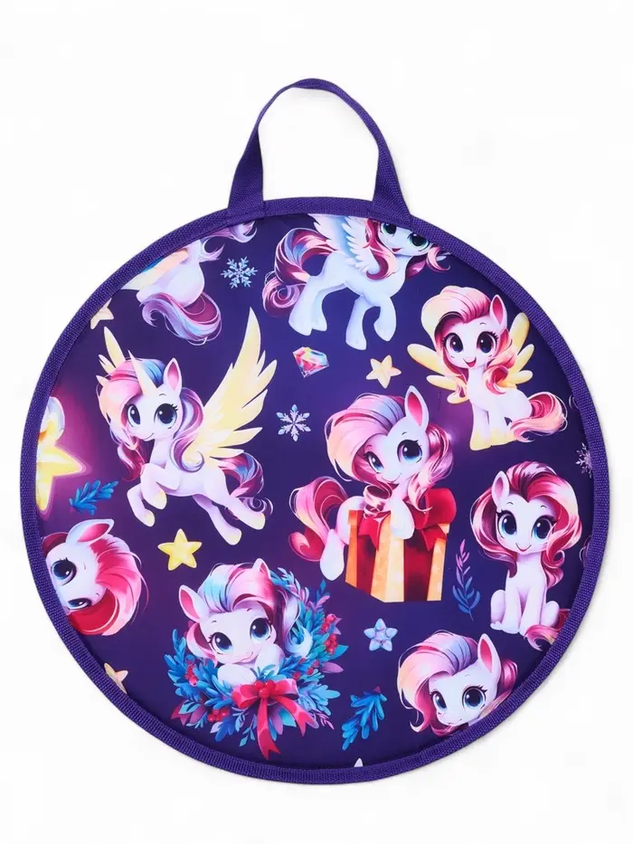 - Яркий дизайн – принт с лошадками понравится девочкам и сделает зимние забавы еще интереснее.