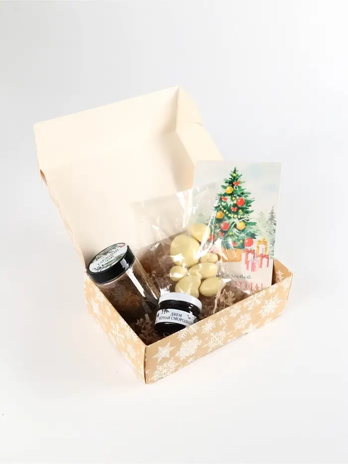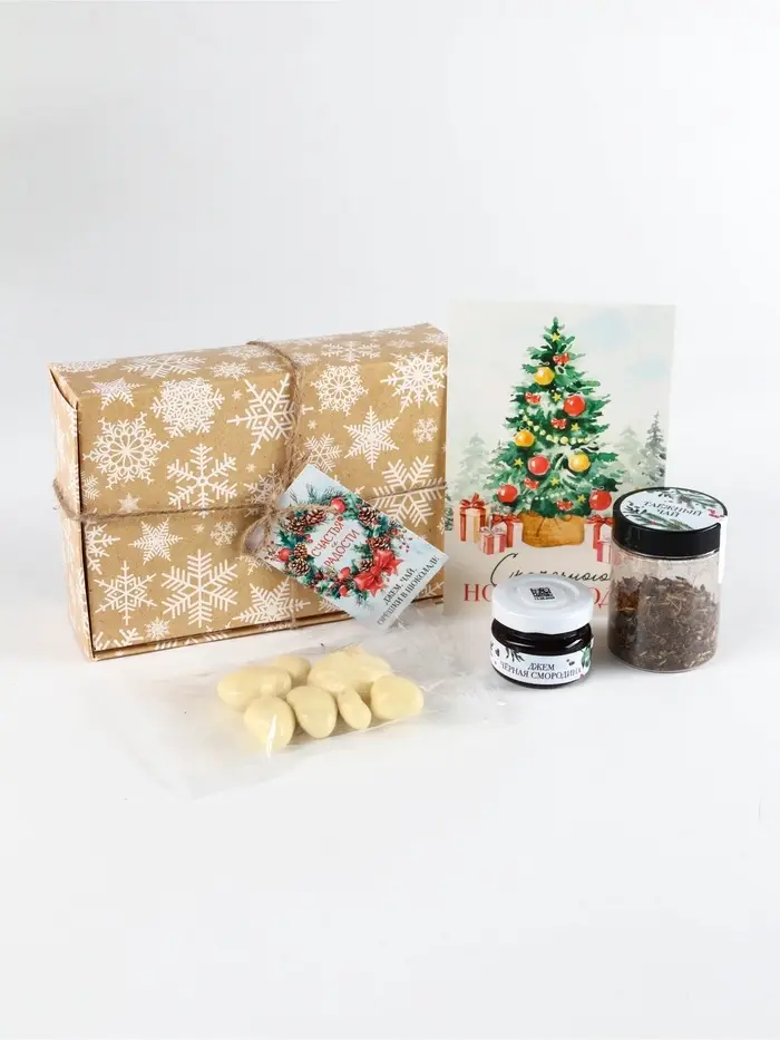 Набор новогодний "Счастья и радости": джем, чай, орехи