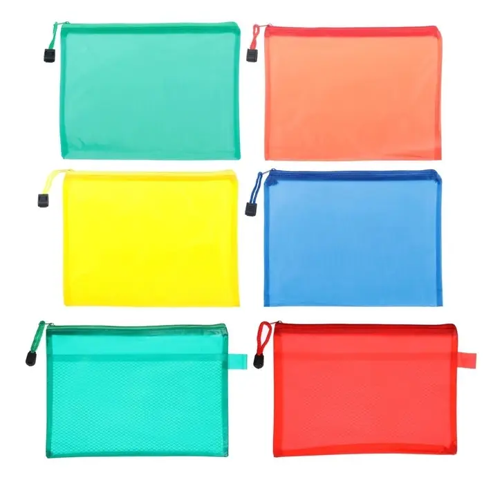 Папка-конверт на молнии Calligrata А6 (175×130 мм), с сеткой внутри, МИКС