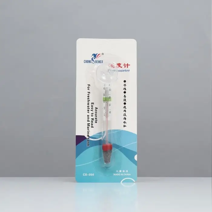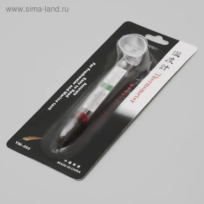 Спиртовой термометр для измерения температуры воды в аквариуме. Размеры: длина 11 см, ширина 1,2 см. Устанавливаемые внутри аквариума спиртовые термометры крепятся на присоске, которая уже идет в комплекте вместе с термометром. Крепить присоску с термометром необходимо на чистой ровной поверхности, очищенной от налета, водорослей и других веществ. Наличие веществ не даст присоске плотно прилегать к поверхности стекла и следовательно термометр будет закреплен не надежно. В последствии он может отвалиться.