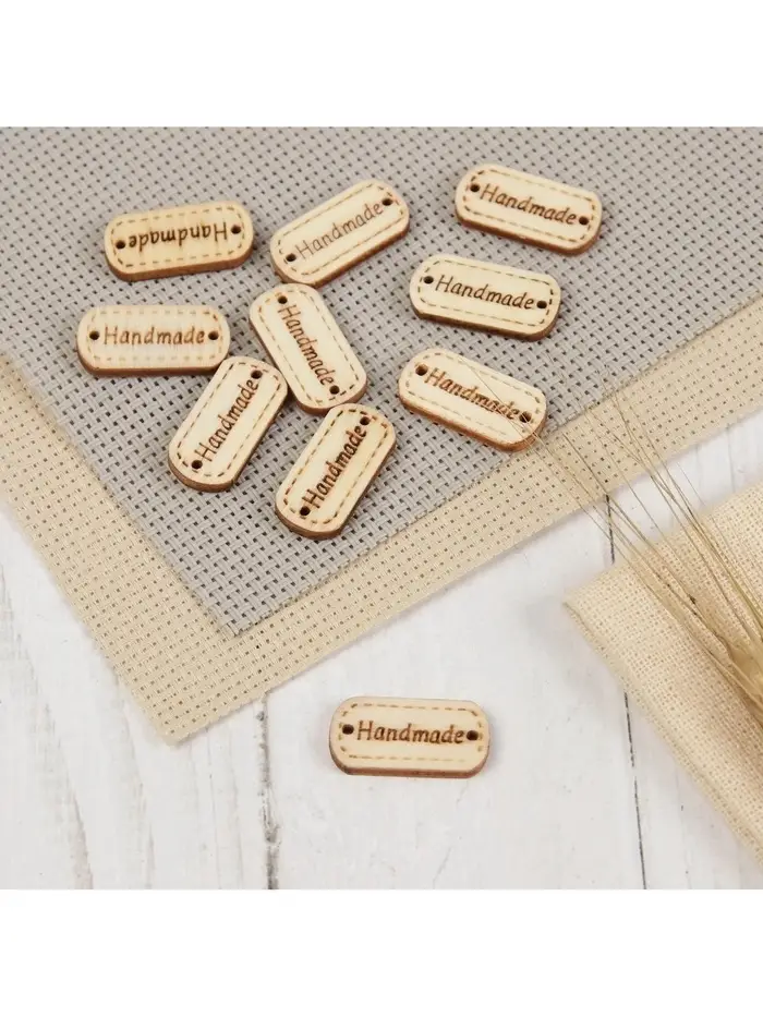 Набор нашивок из дерева Hand made, 2.4×1.2 см, 10 шт.