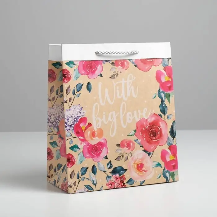 Пакет подарочный крафтовый, упаковка, «With big love», 23 х 27 х 12 см