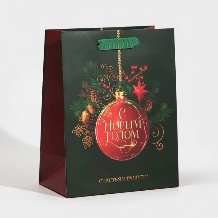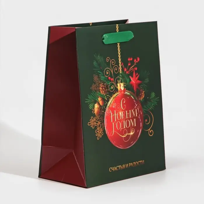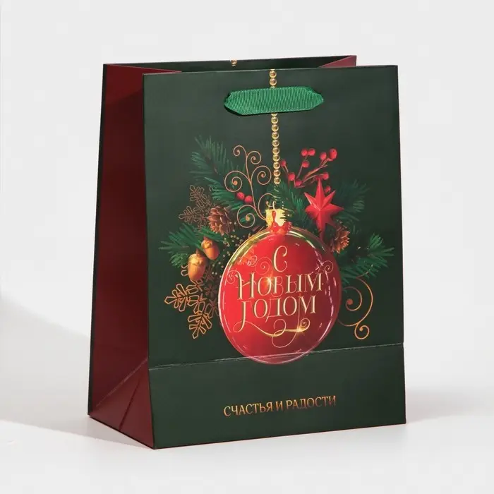 Пакет подарочный новогодний ламинированный «Счастья и радости», MS 18 х 23 х 10 см