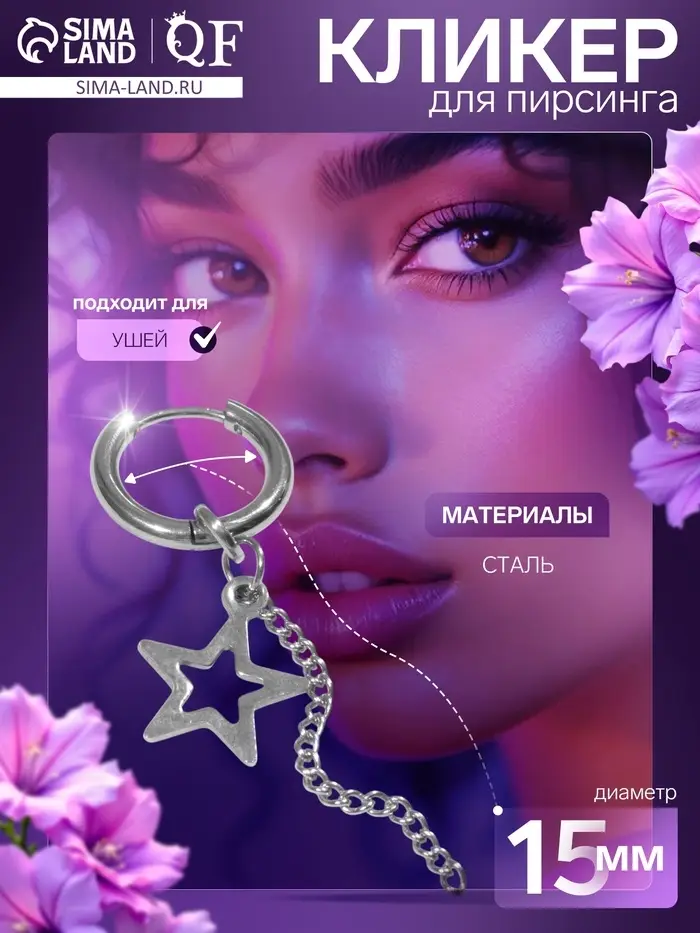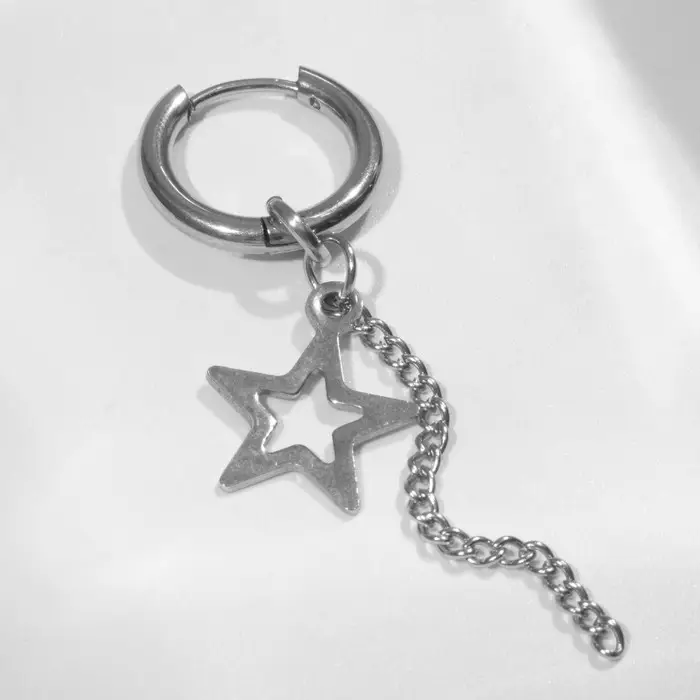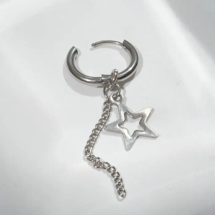 Пирсинг в ухо «Кольцо» звезда с цепью, d=15 мм, цвет серебро