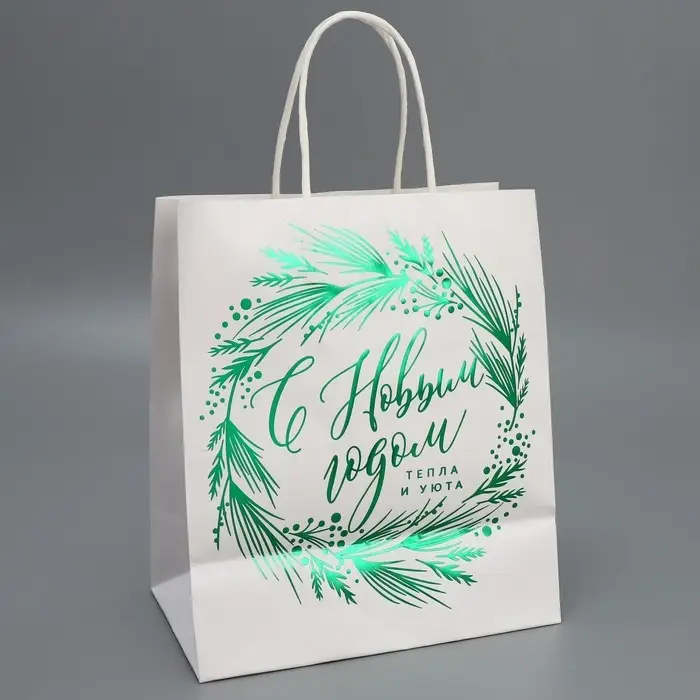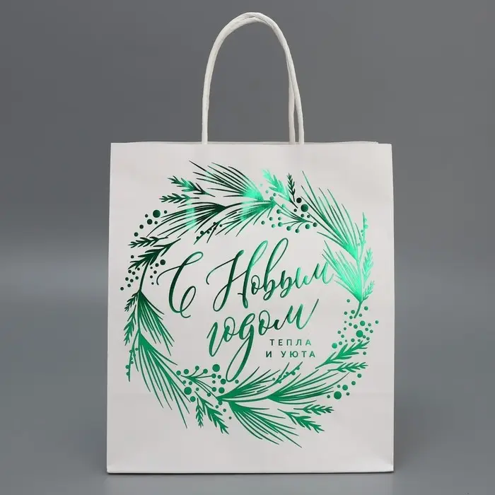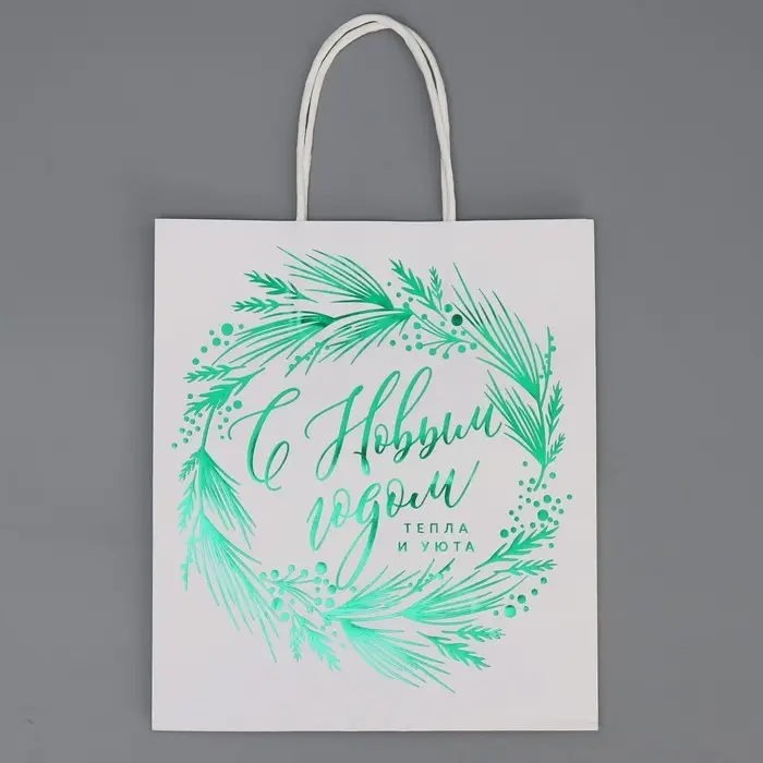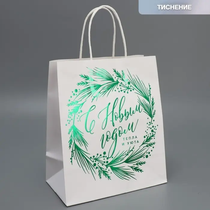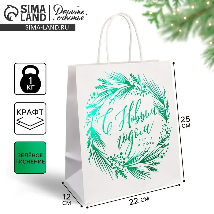 Пакет подарочный новогодний крафтовый «Тепла и уюта», 22 х 25 х 12 см