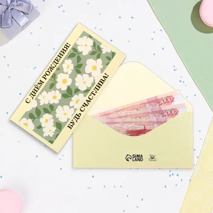 Конверт для денег «С Днём Рождения! Будь счастлива!» 16×8 см