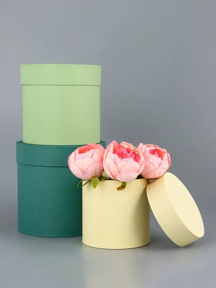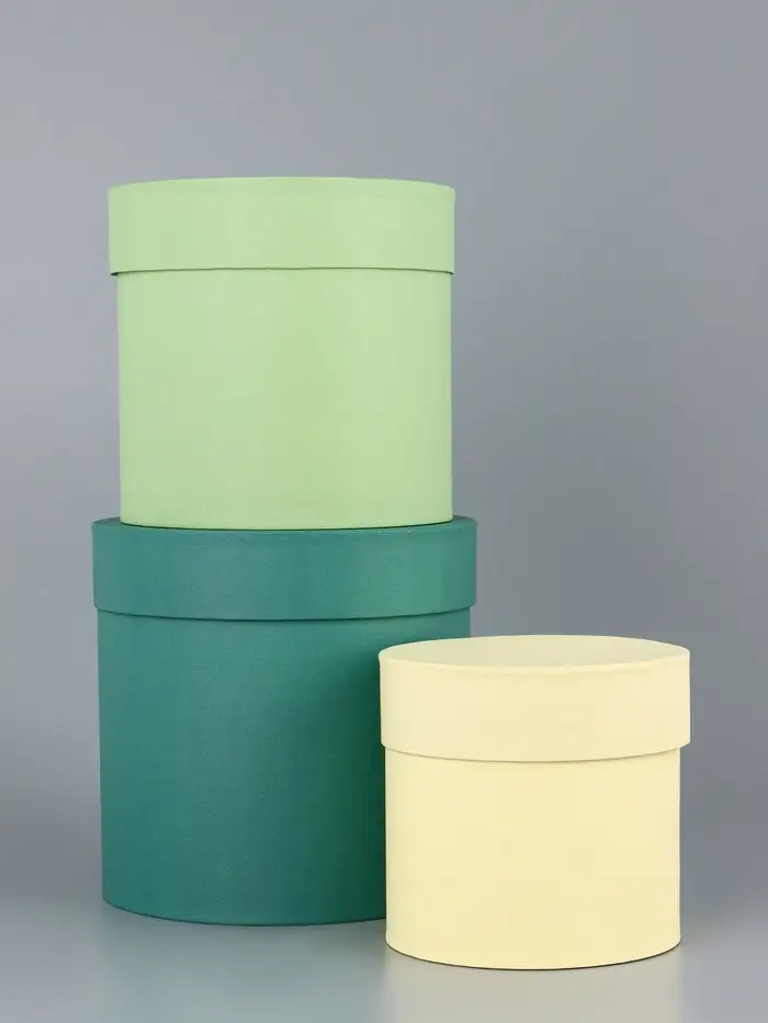- Три коробки диаметром 18, 16 и 13 см в наборе: Круглая форма подходит для упаковки косметики, сладостей, небольших аксессуаров или handmade-подарков. Можно комбинировать цвета для создания градиентного эффекта.