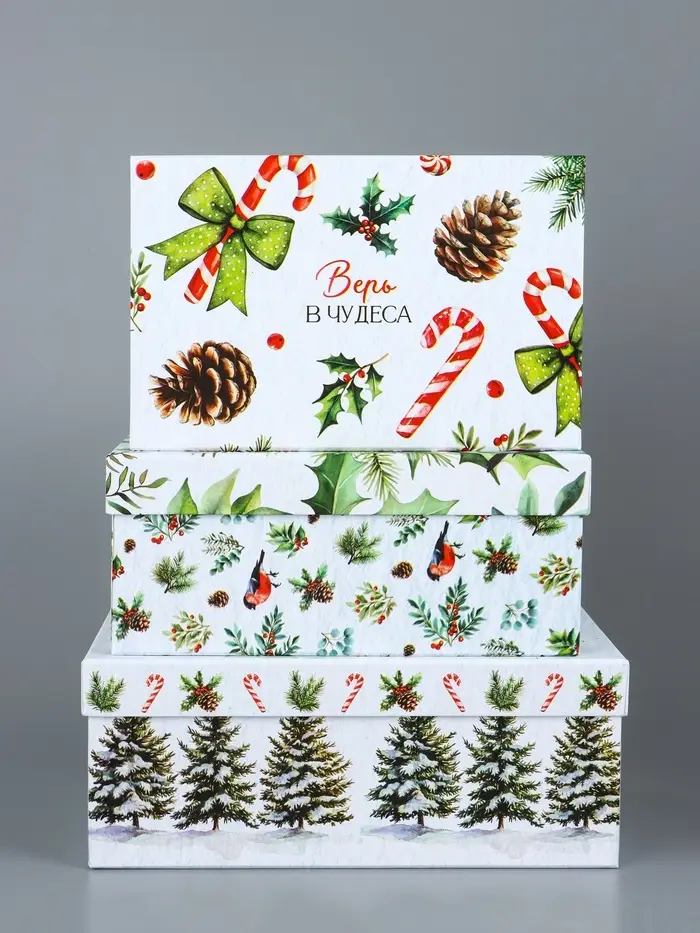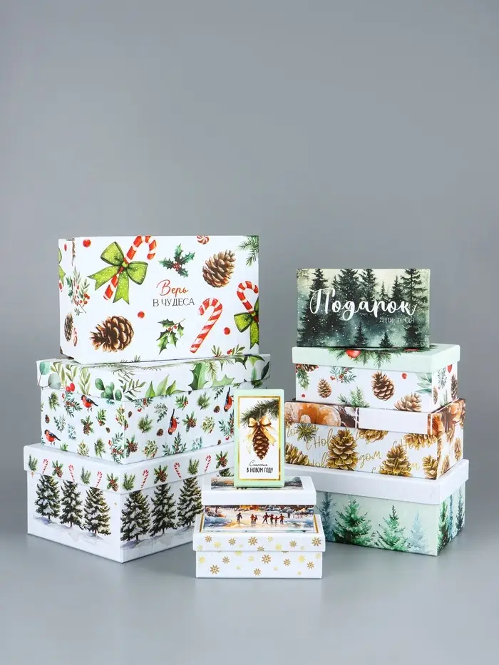 Для семейных праздников: Набор используют для подготовки подарков родным, друзьям или коллегам — одинаковый стиль оформления создает ощущение продуманности. После праздника коробки подходят для хранения елочных украшений или зимних аксессуаров. Просто соберите коробку, положите подарок и добавьте ленту — новогоднее чудо готово.