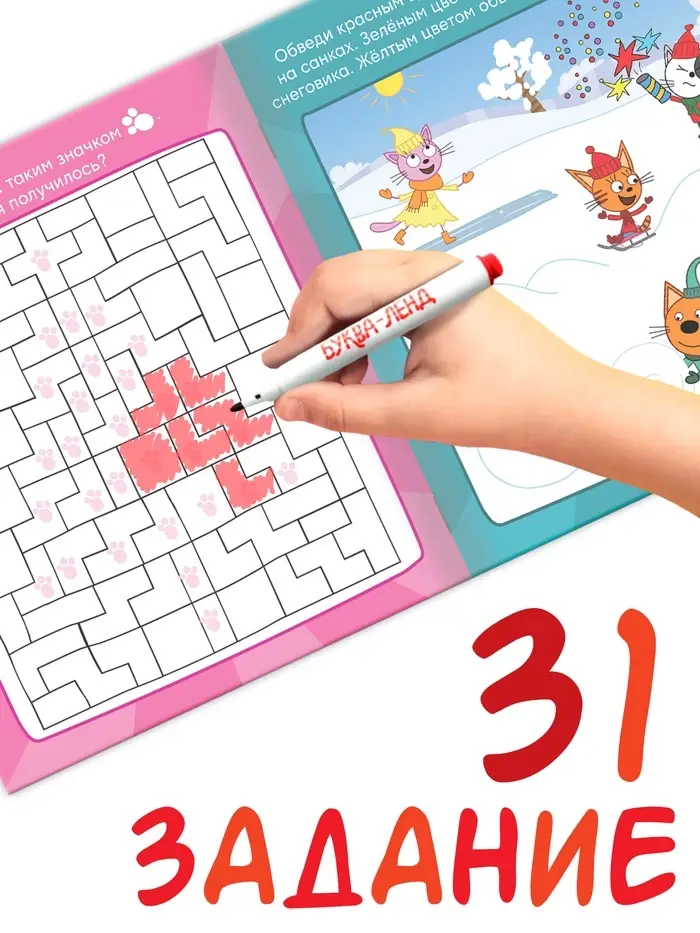 Многоразовая книга "31 весёлое задание. Новый год", + 5 маркеров, Три кота