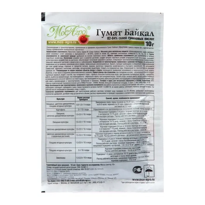 Стимулятор роста и развития растений "Гумат Байкал", порошок, 10 г