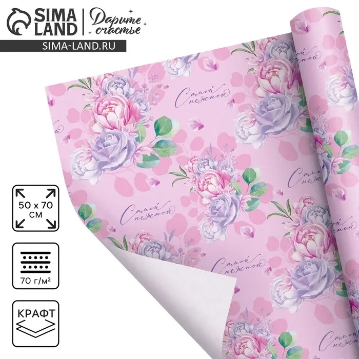 Бумага упаковочная крафтовая «Самой нежной», 50 х 70 см