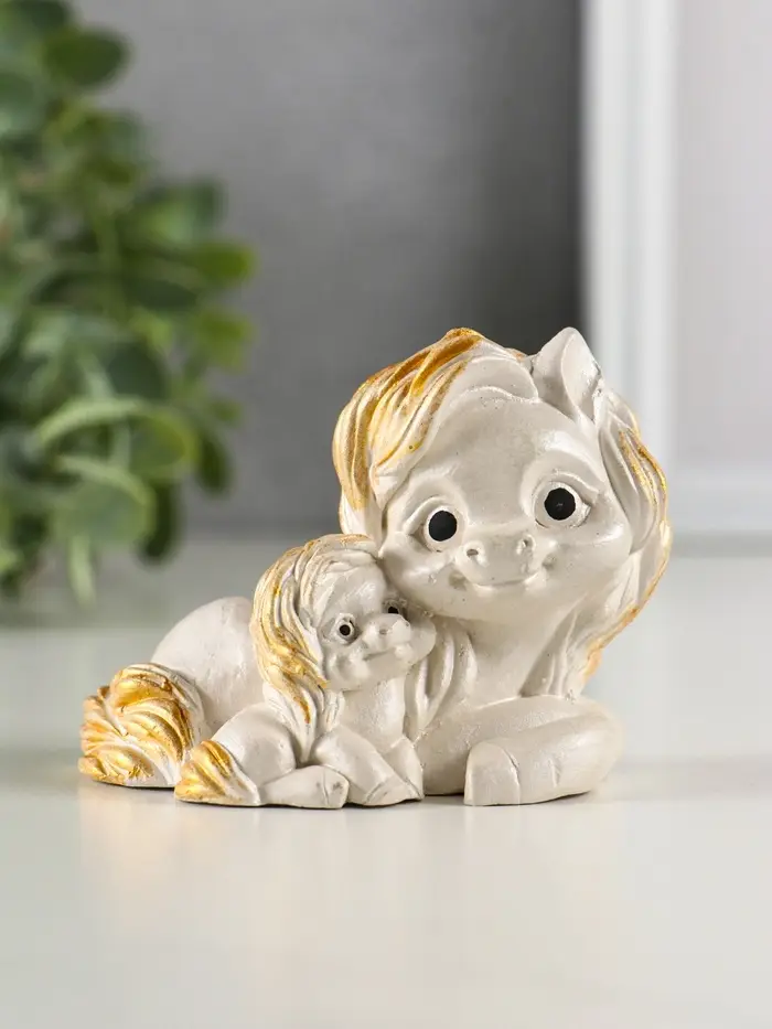 Фигура гипс "Пони мама" 9х7х6 см, перламутр