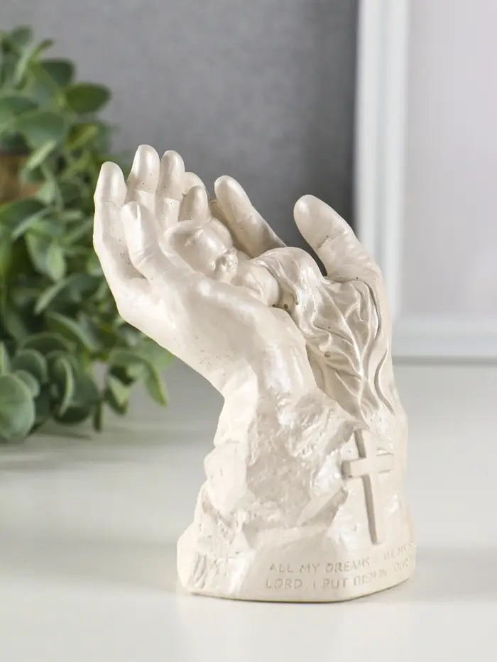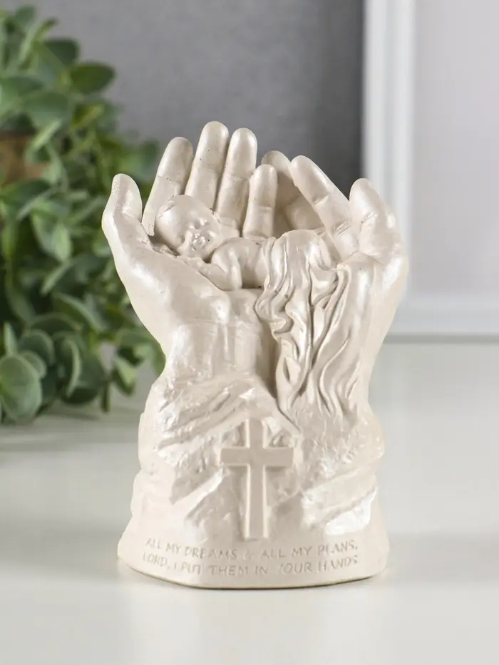 Символ бесконечной любви и самого главного чуда. Гипсовая фигурка «Младенец в руках» — это нежный и трогательный образ, воплощенный в перламутровом гипсе. Композиция передаёт хрупкость новой жизни и её высшую защищённость, становясь глубоким выражением чувств.