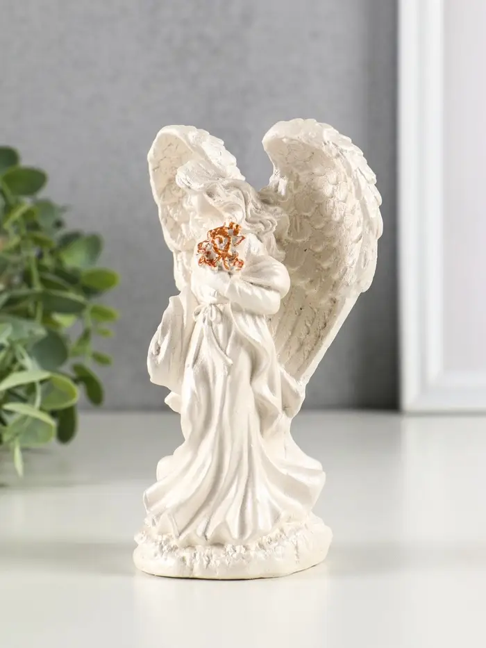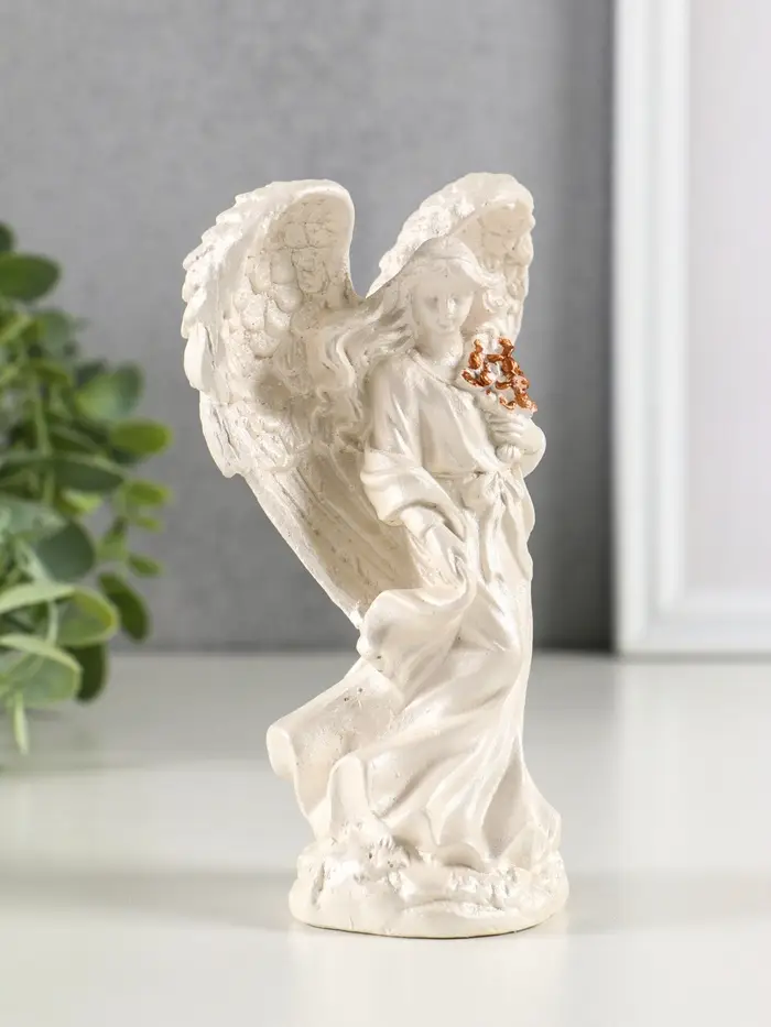 Фигура гипс "Ангел с крыльями" 15х7 см, перламутр