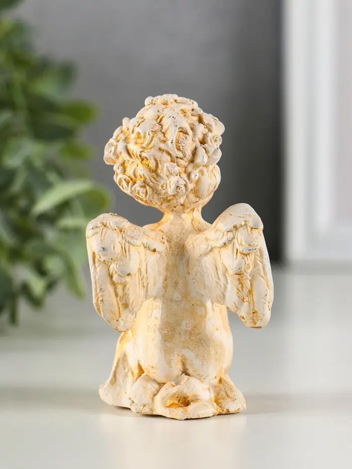 Фигура гипс "Ангел с сердцем" 6х8х5см, позолота
