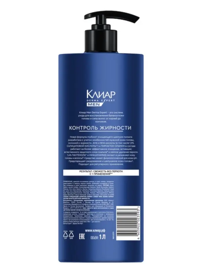 Шампунь мужской для жирных волос представлен в большом объеме 1 л.