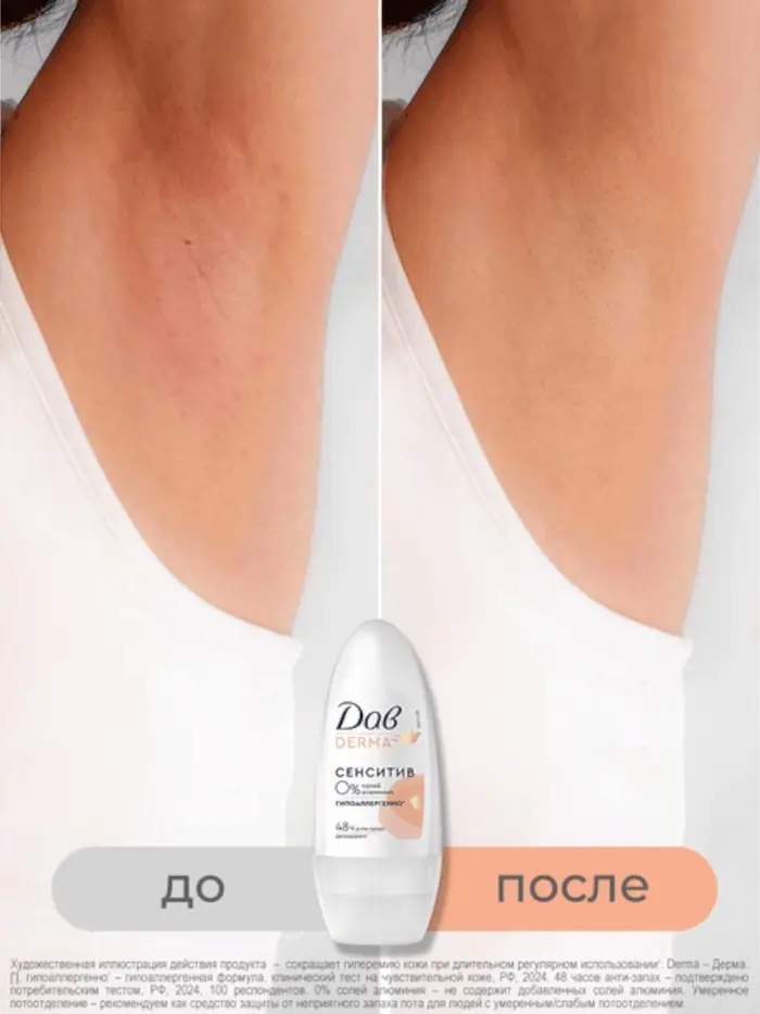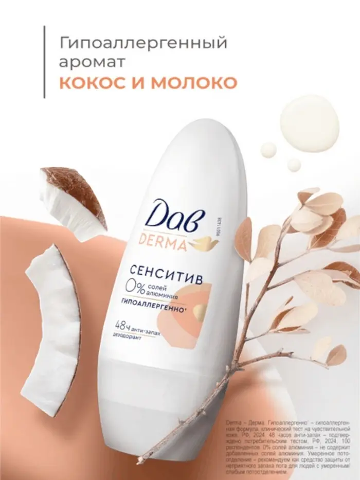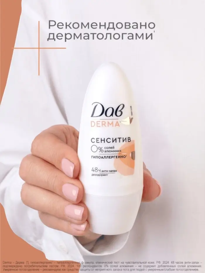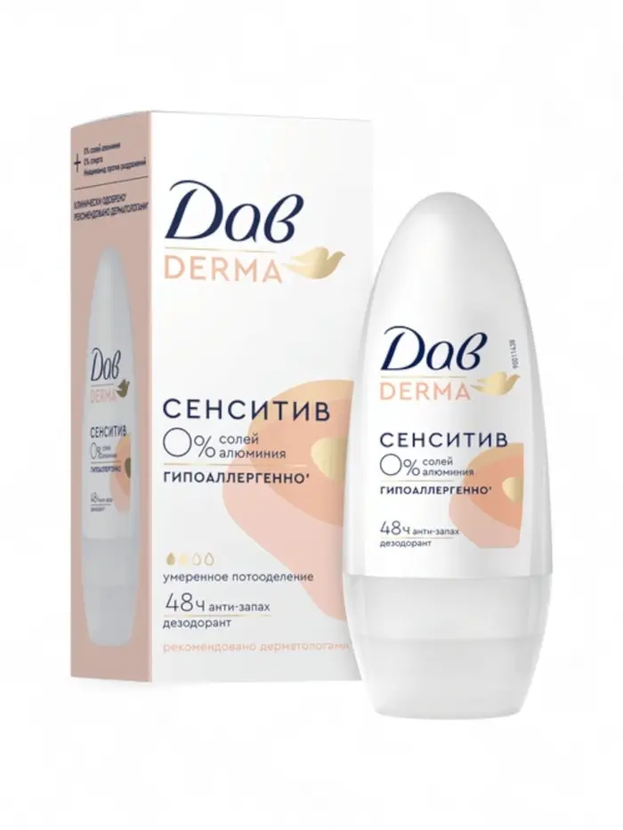 Гипоаллергенный дезодорант шариковый Дав Derma от запаха пота создан для женщин, девушек и девочек-подростков.