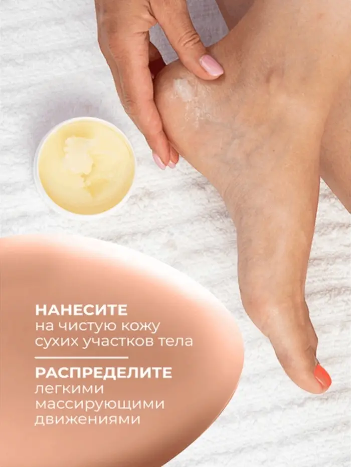 Восстанавливающий крем-воск от трещин подходит для нанесения на пятки и локти, а также для защиты кожи губ от ветра и холода.