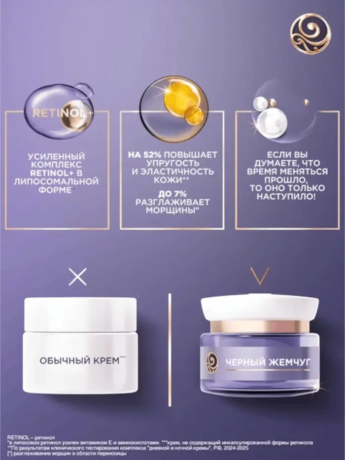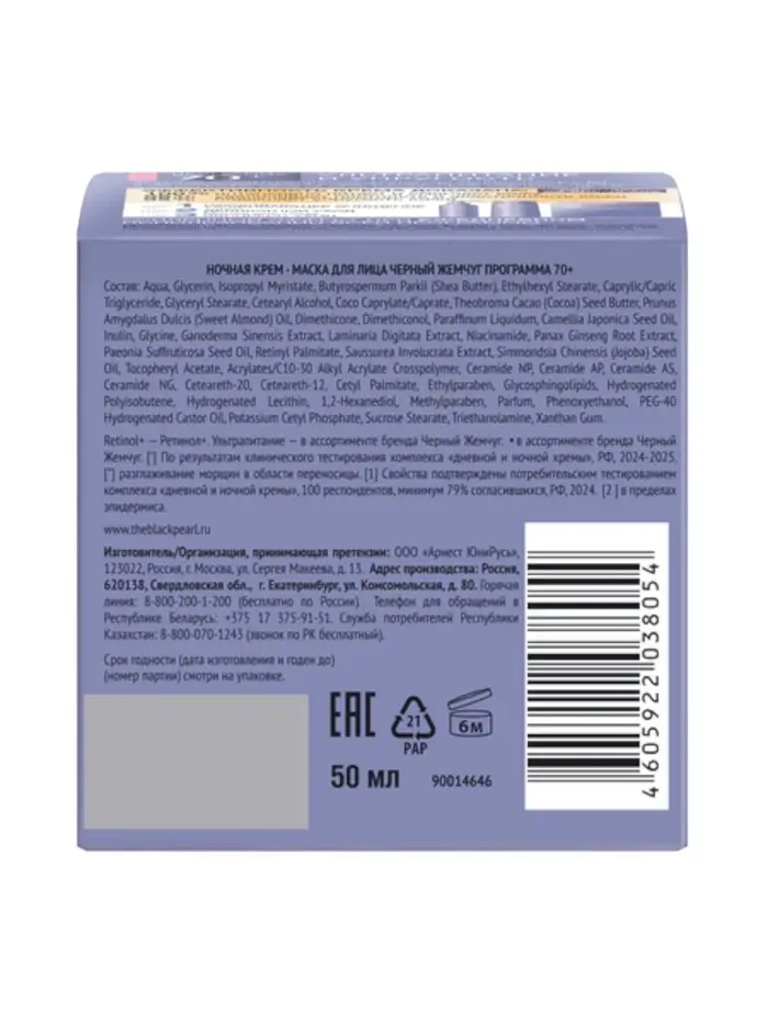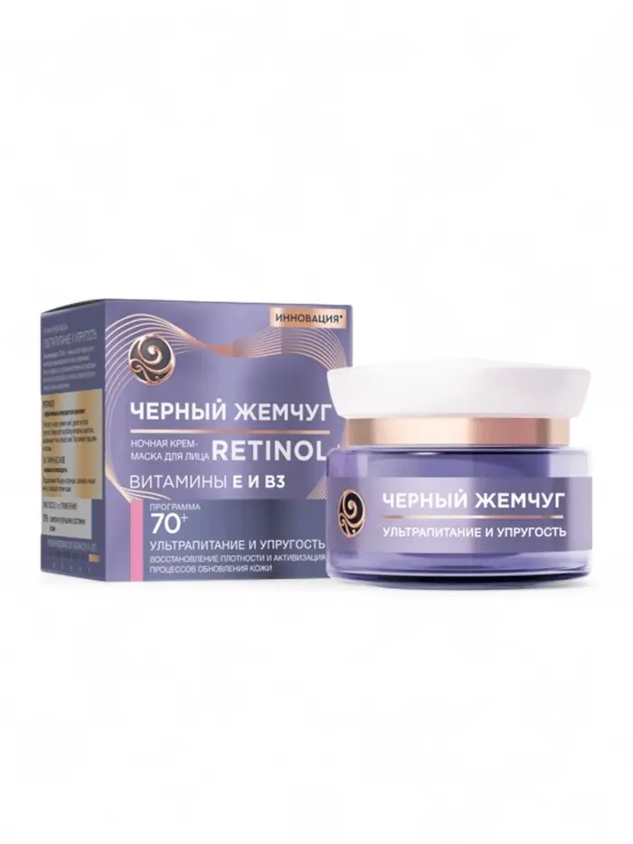 Крем-маска для лица ночная "Черный жемчуг" с ретинолом 70+, 50 мл