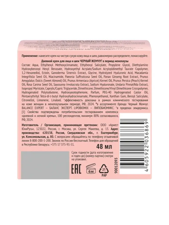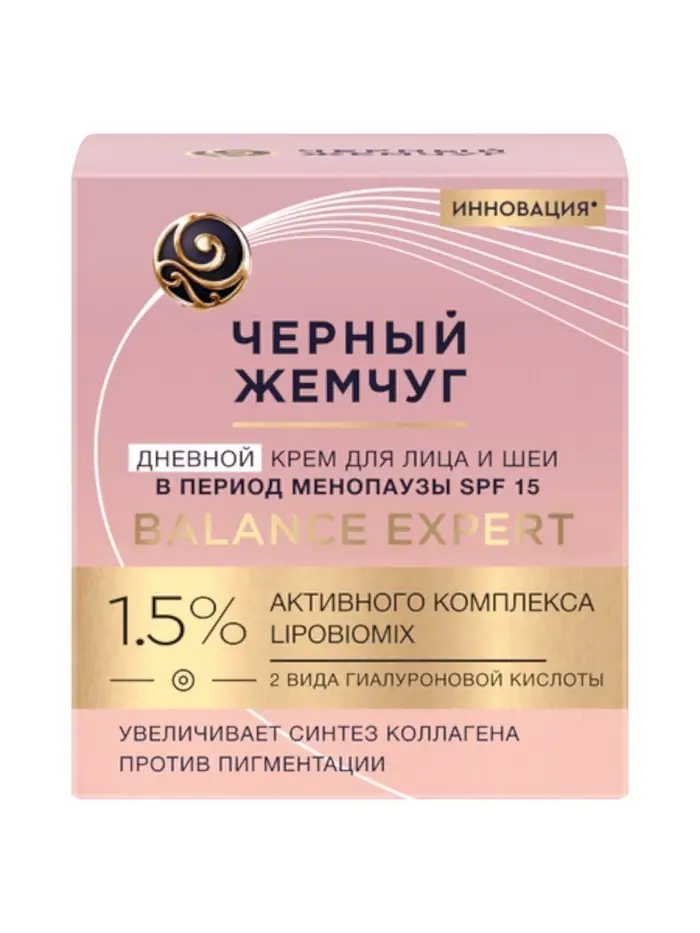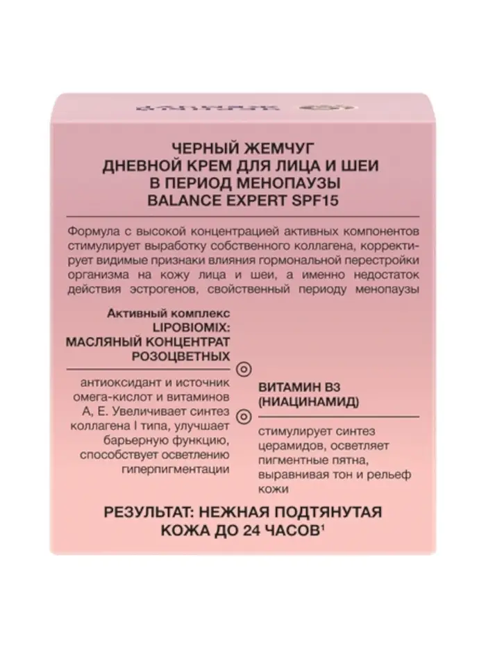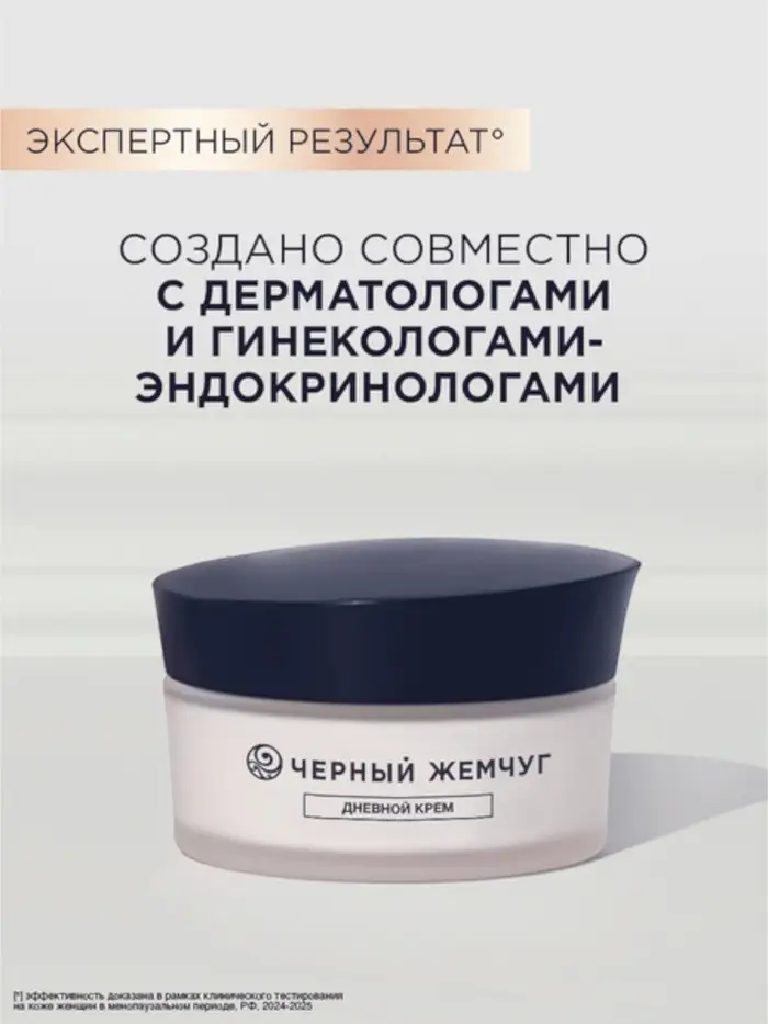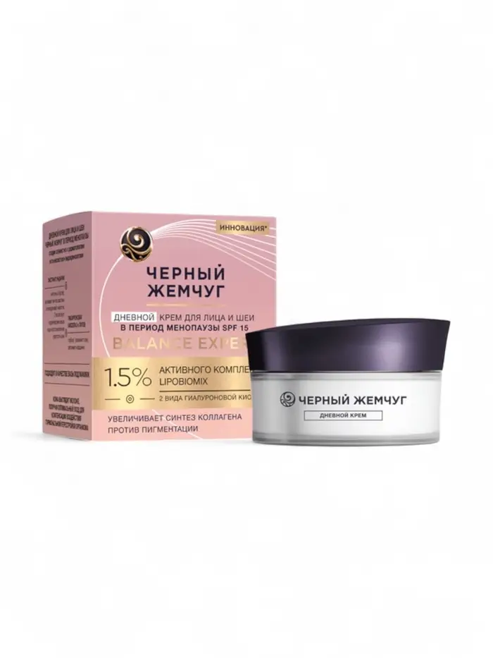 Дневной крем для лица и шеи Черный Жемчуг — это инновационное средство, созданное с учетом потребностей кожи в период менопаузы.
