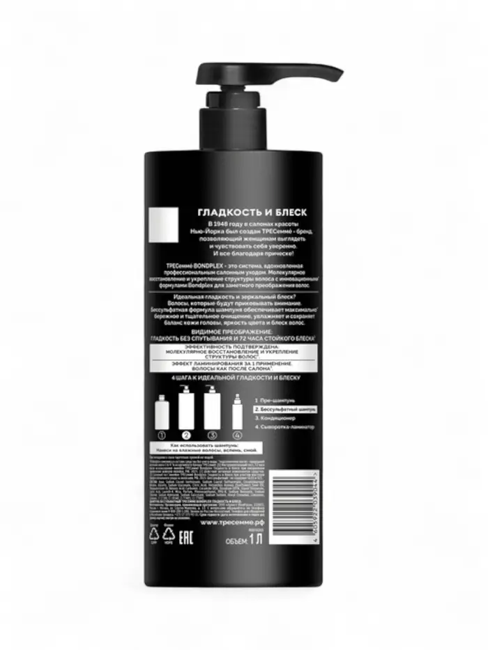 Шампунь для волос бессульфатный "ТРЕСемме" гладкость и блеск, 1000 мл