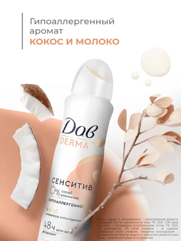Гипоаллергенный дезодорант-спрей Дав Derma от запаха пота создан для женщин, в том числе и для беременных, для девушек и девочек-подростков.