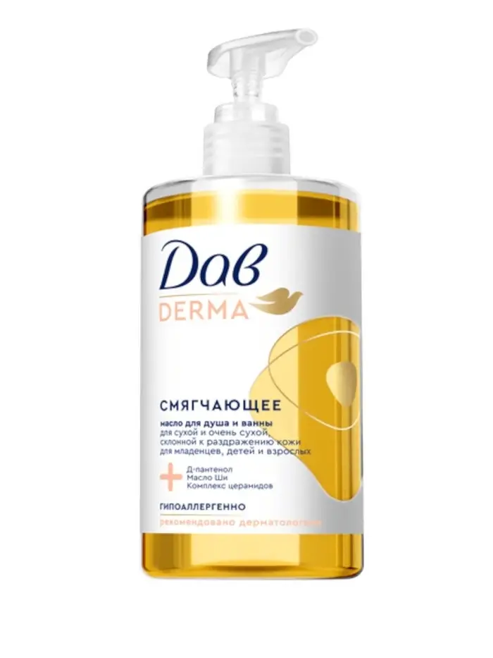 Смягчающее масло для душа и ванны Дав Derma семейное — это новинка для мягкого очищения и ухода за кожей.