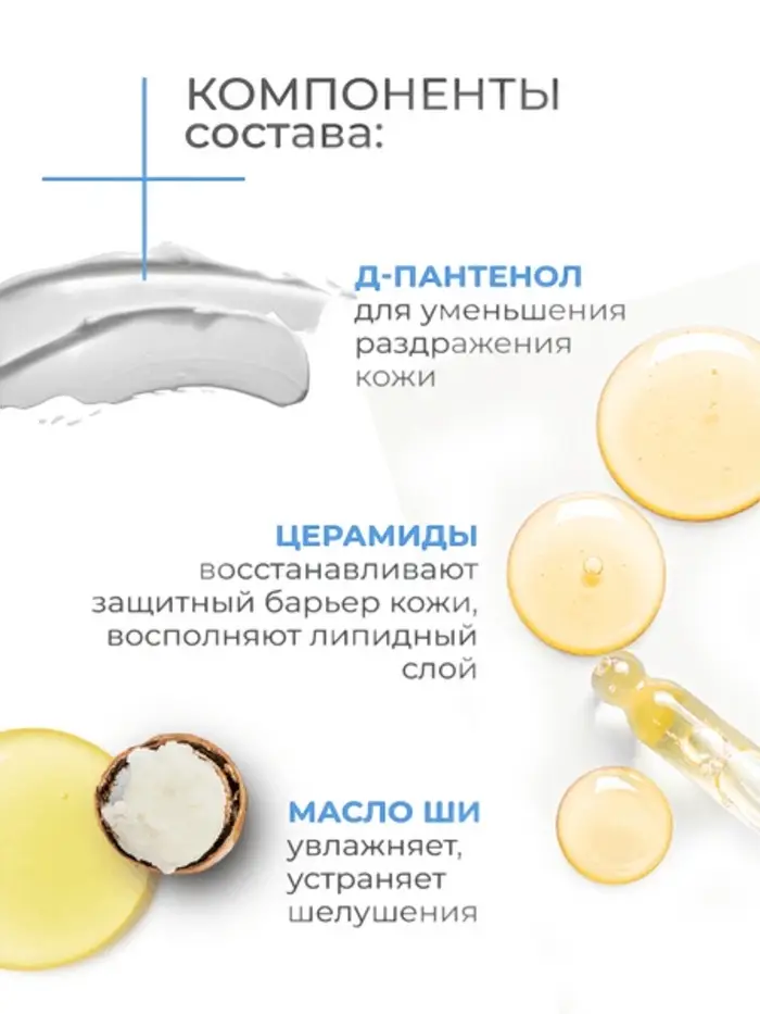 Благодаря комплексу церамидов, масла ши и Д-пантенола средство способствует восстановлению микробиома кожи, укрепляет ее защитный барьер и обеспечивает длительное увлажнение.