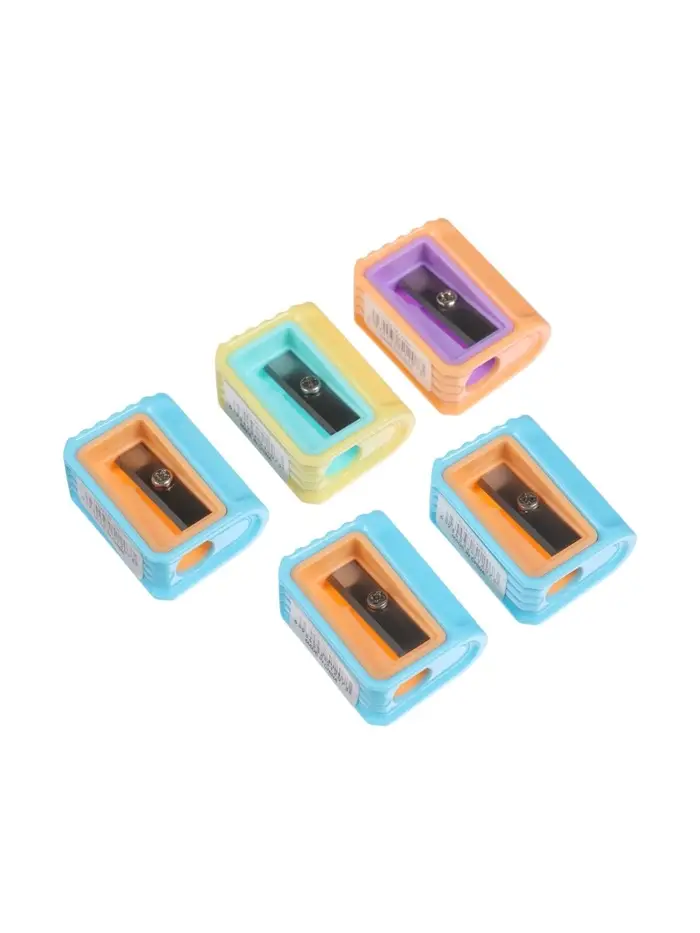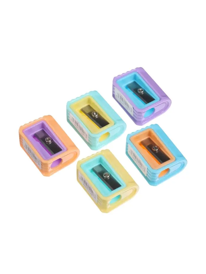 Набор из пяти ребристых точилок в пастельной гамме сочетает эргономику и визуальную гармонию. Рифлёный корпус обеспечивает уверенный хват, а нежные цвета создают спокойную атмосферу на рабочем столе ученика, художника или офисного сотрудника.