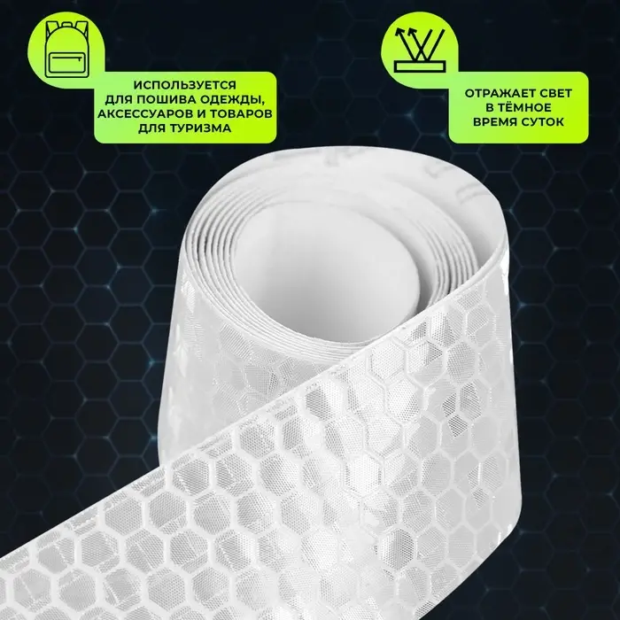 Светоотражающая лента-наклейка, 2,5 см, 1 ± 0,1 м, цвет белый