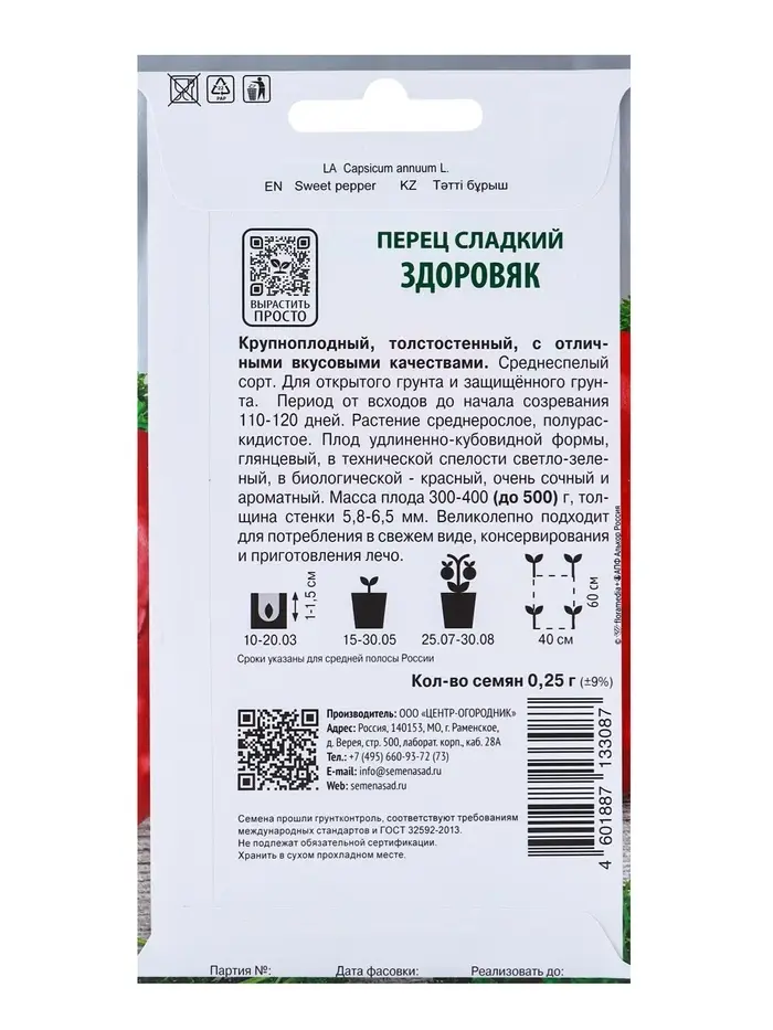 Семена Перец сладкий "Здоровяк", 0,25 г