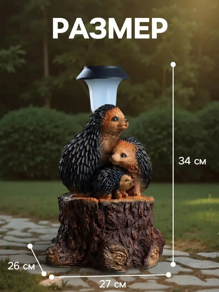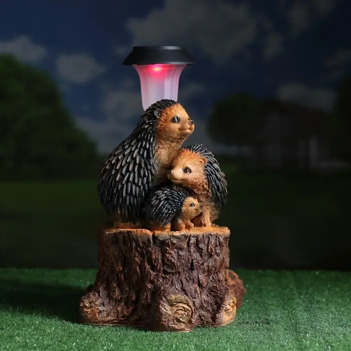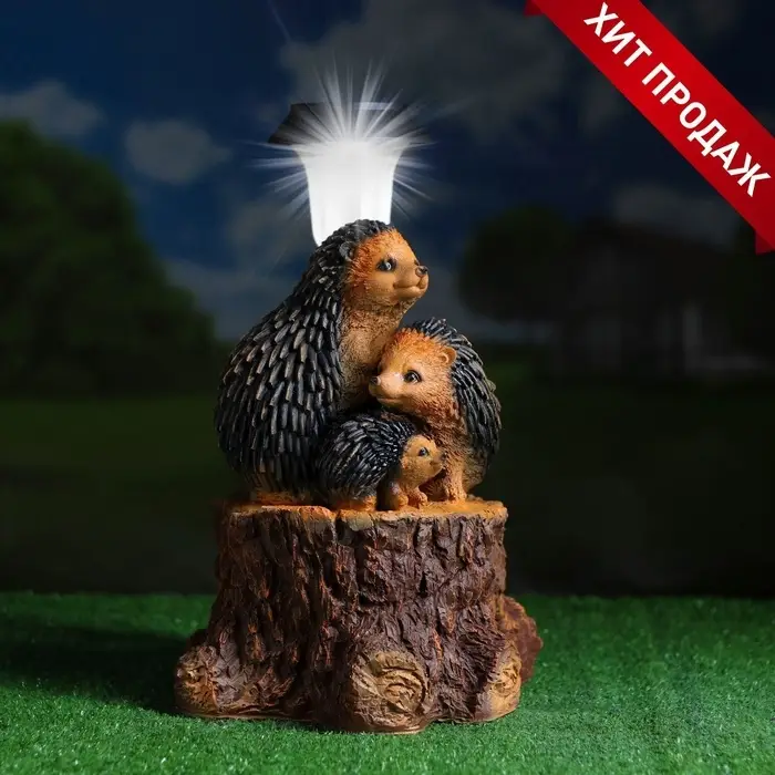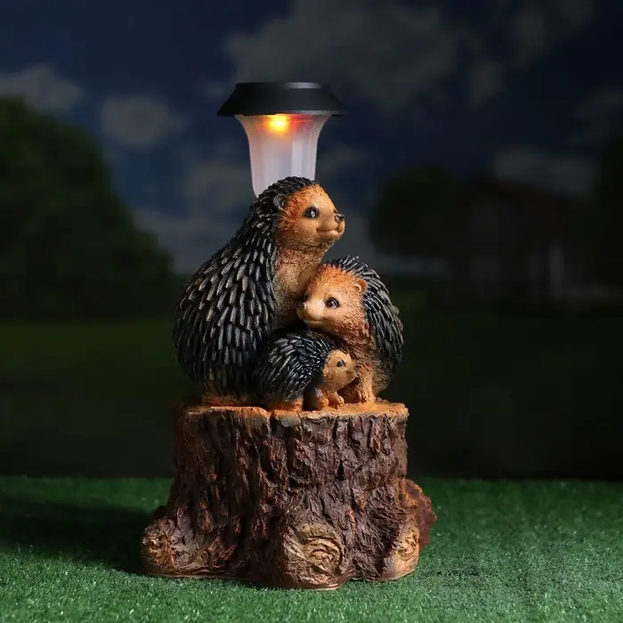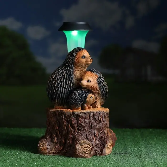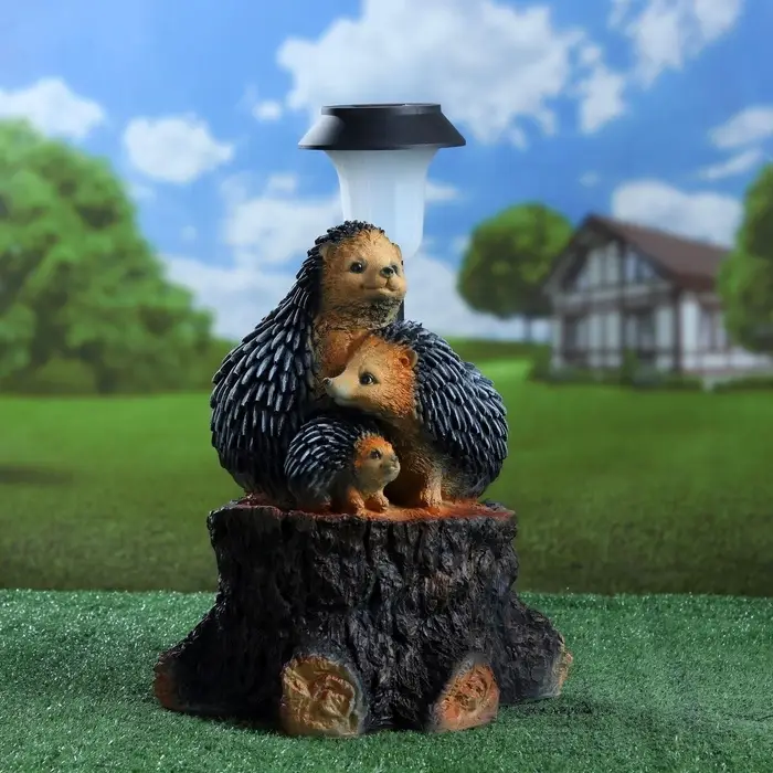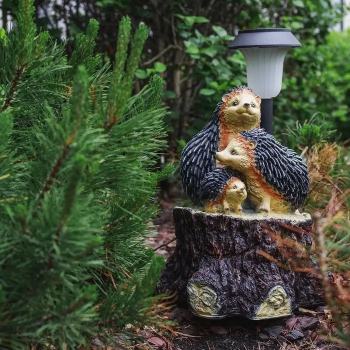 Садовый фонарь на солнечной батарее «Три ежа» — это автономный светильник для сада, который заряжается от дневного света. Компактная композиция размерами 27×26×34 см не требует прокладки кабеля и устанавливается в любом уголке участка.