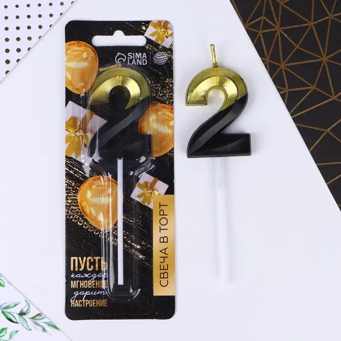 Свеча-цифра для торта «2», 12 х 3,5 см.