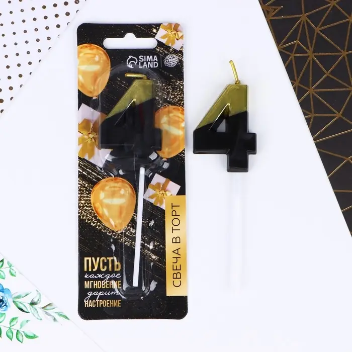 Свеча для торта, цифра «4», 11,5 х 2,3 см