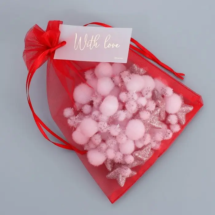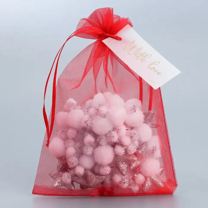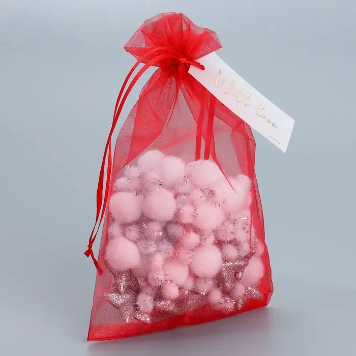 Новый год. Мешок подарочный "Помпоны", 20 х 30 см