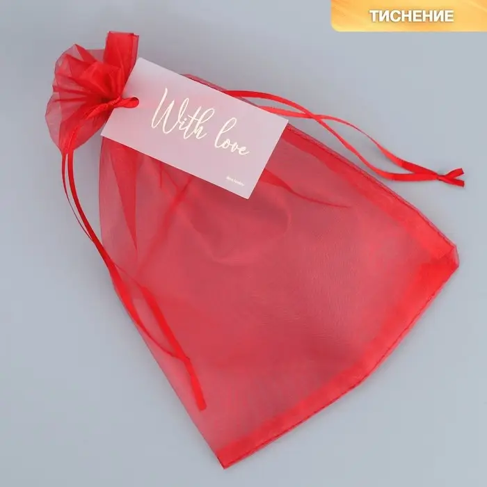 Мешочек подарочный органза бордовый «Счастье внутри», с шильдиком, 16 х 24 см +/- 1.5 см