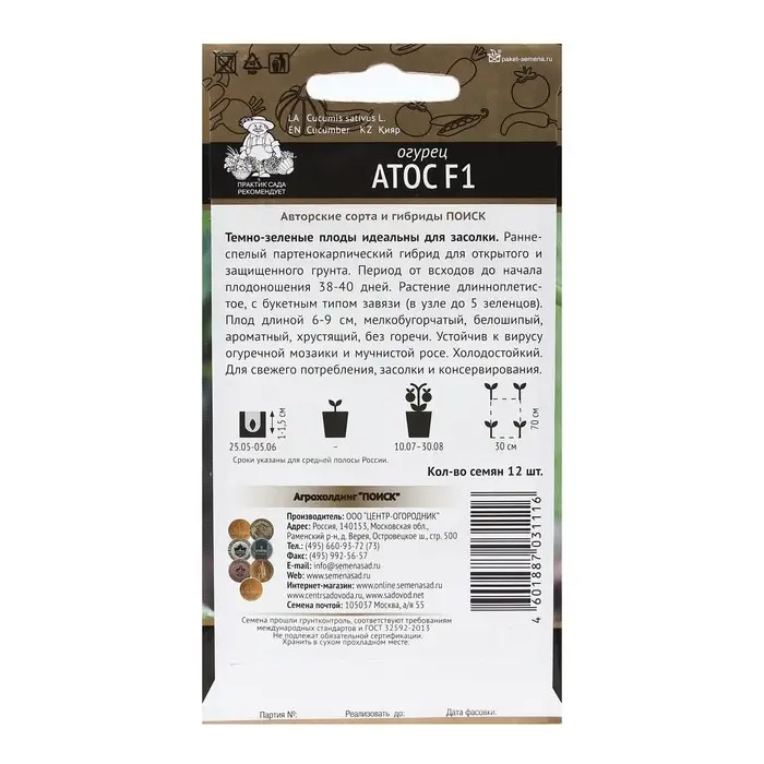 Семена Огурец "Атос F1" 12 шт