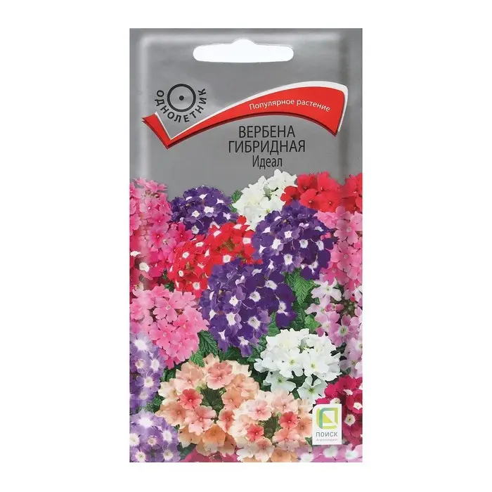 Вербена гибридная Идеал - яркая смесь с душистыми цветками. Куст компактный, высотой до 30 сантиметров. Цветёт с июня по октябрь. Цветки разнообразных оттенков: вишневые, розовые, нежно-голубые, красные, белые, лиловые, с белым зёвом. Растение неприхотливое, холодостойкое, отлично растёт на открытых солнечных местах с хорошо дренированной почвой.
