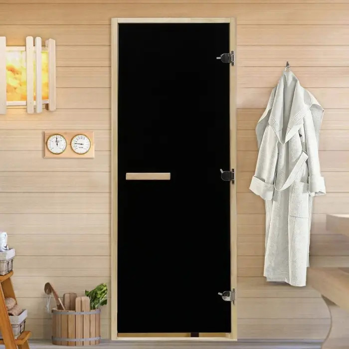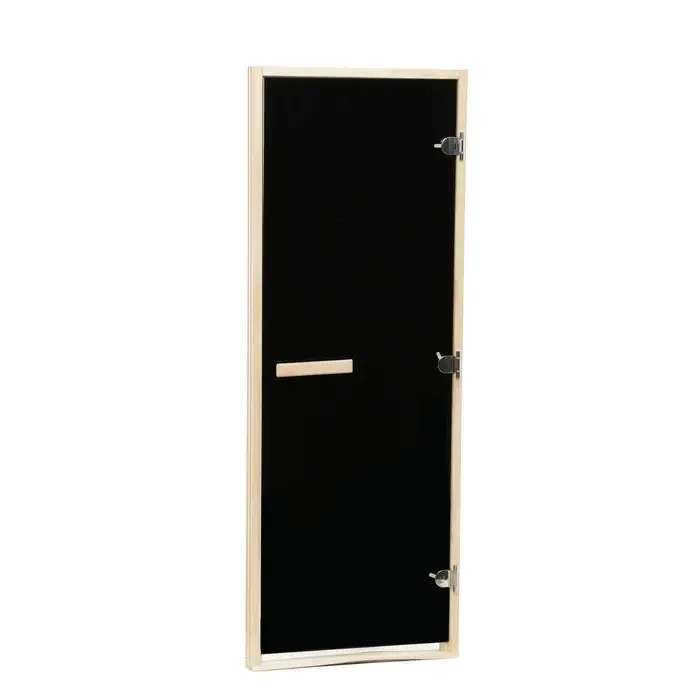 Дверь для бани и сауны «Блэк», 180×70 см по коробке, липа, чёрное стекло