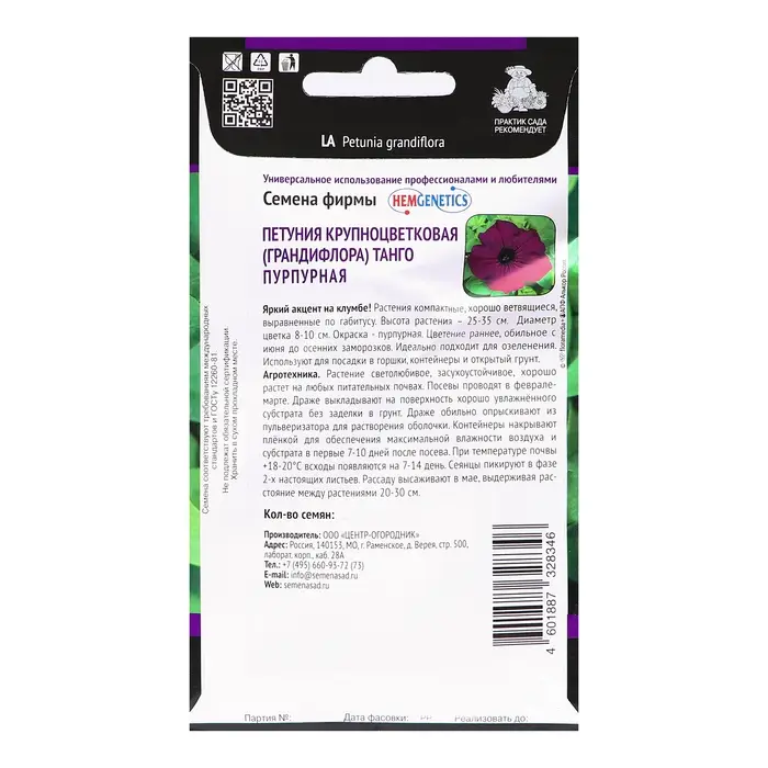 Яркий акцент на клумбе! Растения компактные, хорошо ветвящиеся, выравненные по габитусу. Высота растения – 25-35 см. Диаметр цветка 8-10 см. Окраска - пурпурная. Цветение раннее, обильное с июня до осенних заморозков. Идеально подходит для озеленения. Используют для посадки в горшки, контейнеры и открытый грунт.Агротехника. Растение светолюбивое, засухоустойчивое, хорошо растет на любых питательных почвогрунтах. Посев семян на рассаду проводят в феврале-марте. Семена слегка вдавливают в почву, землей не присыпают. Посадочную емкость накрывают стеклом и ставят в освещенное место. При температуре почвы +18-20°C всходы появляются на 14-20 день. Сеянцы пикируют в фазе 2-х настоящих листьев. Рассаду высаживают в открытый грунт после окончания весенних заморозков.Семена соответствуют требованиям международных стандартов и ГОСТу РФ 12260-81