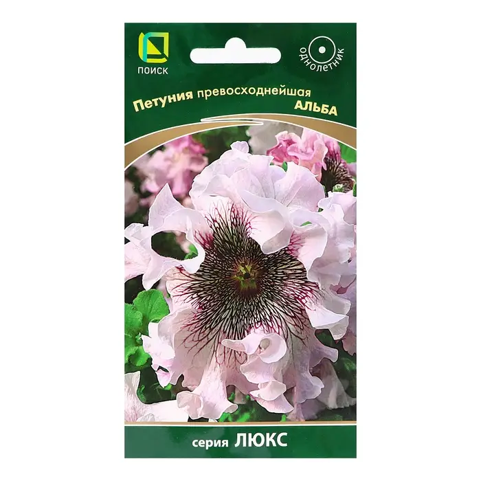 Восхитительные гигантские цветы диаметром до 16см. Растение мощное высотой 40-45 см, ветвистое. Цветы очень крупные, бело-розовые с волнистыми бахромчатыми краями, зев цветка украшен темно-фиолетовыми жилками. Цветение с июня до сильных осенних заморозков. Прекрасно подходит для клумб, рабаток.Агротехника. Растение светолюбивое, засухоустойчивое, хорошо растет на любых питательных почвогрунтах. Посев семян на рассаду проводят в феврале-марте. Семена слегка вдавливают в почву, землей не присыпают. Посадочную емкость накрывают стеклом и ставят в освещенное место. При температуре почвы +18-20°С всходы появляются на 14-20 день. Сеянцы пикируют в фазе 2-х настоящих листьев. Рассаду высаживают в открытый грунт после окончания весенних заморозков.Семена соответствуют требованиям международных стандартов и ГОСТу РФ 12260-81