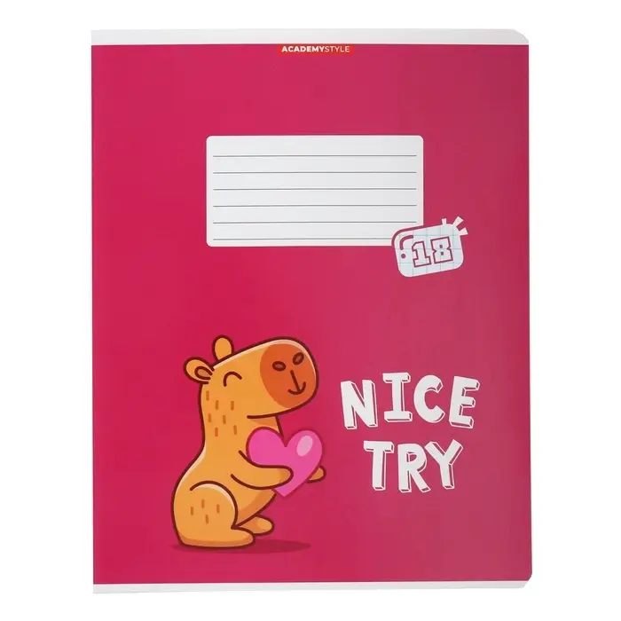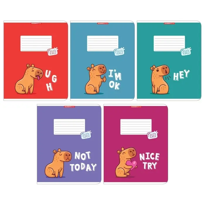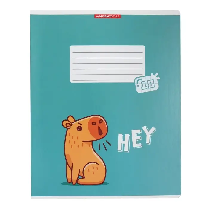 Тетрадь 18 листов в клетку "Капибара", обложка мелованный картон, ВД-лак, блок 60 г/м2, 5 видов, МИКС
