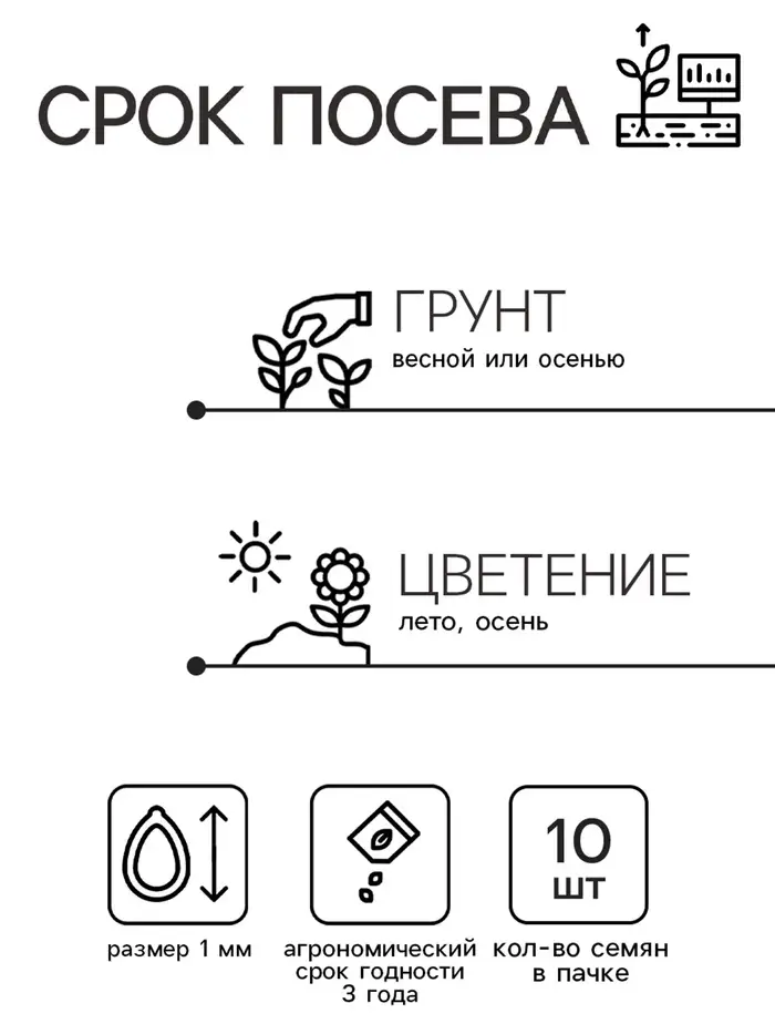 - Агрономический срок годности семян: 3 года, обеспечивая стабильный запас семян для вашего сада.