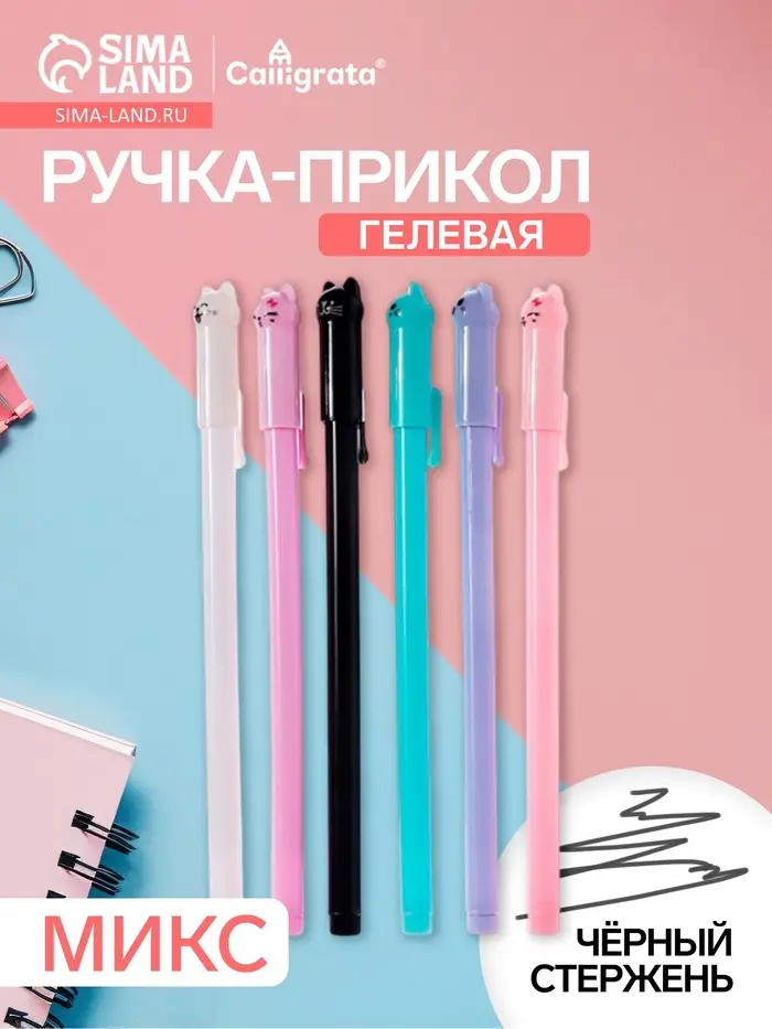 Ручка-прикол Calligrata «Котик», чёрный стержень, гелевая, МИКС